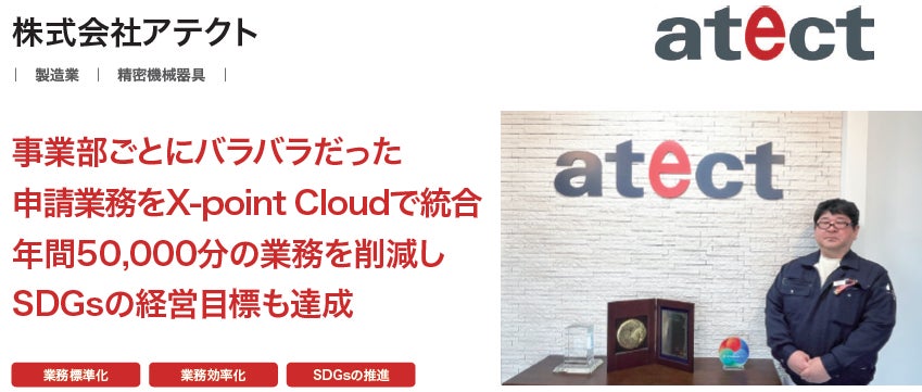 株式会社アテクトが、クラウド型ワークフロー「X-point Cloud」導入によりSDGsの経営目標「年間15,000枚以上の紙の削減」を達成