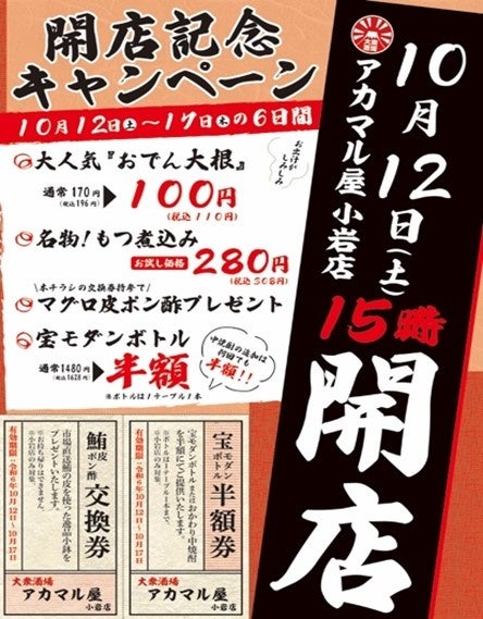 『アカマル屋 小岩店』開店記念キャンペーン 実施中!