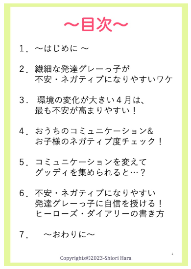 今回はこの電子書籍を通して、発達障害グレーゾーンや繊細な気質をもつ子どもの、環境の変化の大きいこの時期特有の「見通しの立たない」不安や悩みに振り回されずに、日常の中の行動を一生モノの自信につなげる方法をお伝えしています。