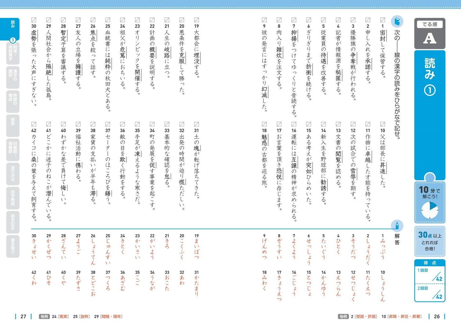本シリーズは、漢字検定対策の定番教材として多くの学習者に親しまれてきました。今回の改訂では、漢検の最新の過去問データに基づいた「でる順」の更新および収録内容の再構成を行い、より効果的な学習をサポートします。