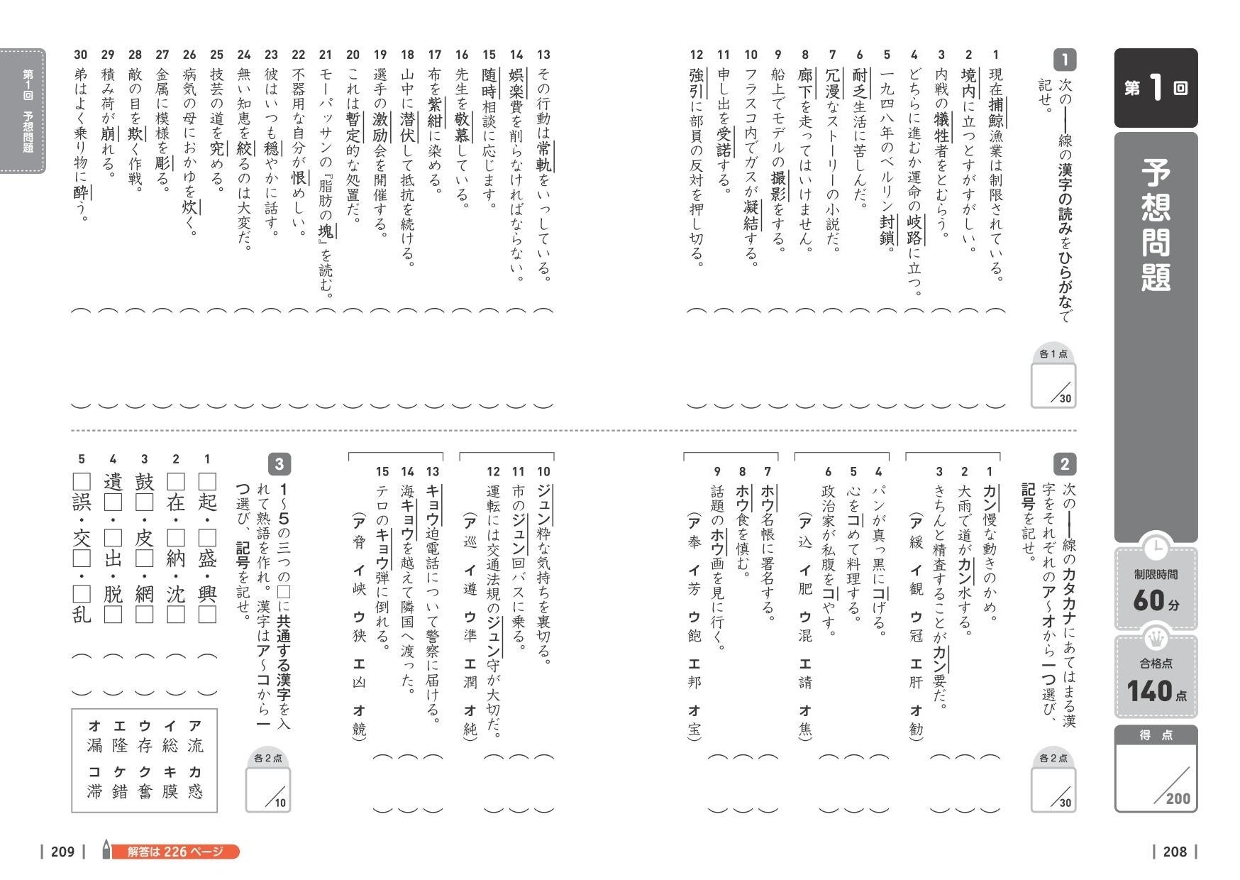 巻末に掲載された予想問題3回分に加え、特典として模擬試験3回分(原寸大解答用紙付き)を無料でダウンロードできます。これにより、合計6回分の試験形式問題に取り組むことが可能となり、実戦力を効果的に養成できます。