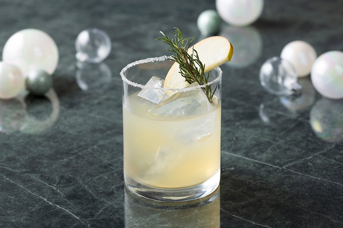 43階スカイラウンジ&ダイニング「アーティスト カフェ」でご用意するのは、ウォッカとアップルジュースを合わせた、リンゴの爽やかさが際立つカクテル。グラスの淵をシュガースノースタイルで仕上げ、冬の煌めきを表現しました。東京ドームシティ ウィンターイルミネーションを見下ろしながらお楽しみください。