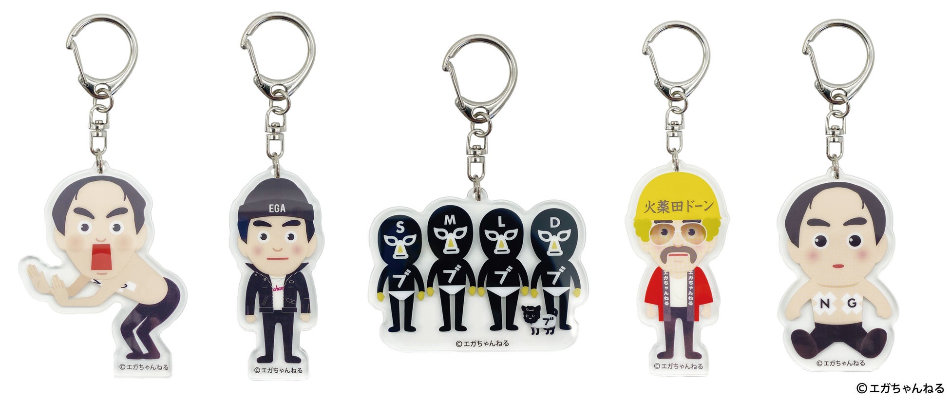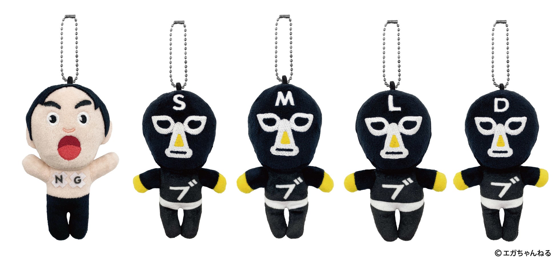 「エガちゃんねる」スタイルの江頭2:50と、「江頭の親友」・ブリーフ団のボールチェーン付きマスコット。