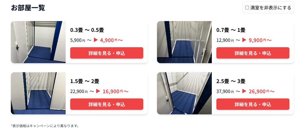 荷物以上に大きな部屋を借りてしまうことや、狭すぎて荷物が入らなかったなんていうトラブルを回避できます。