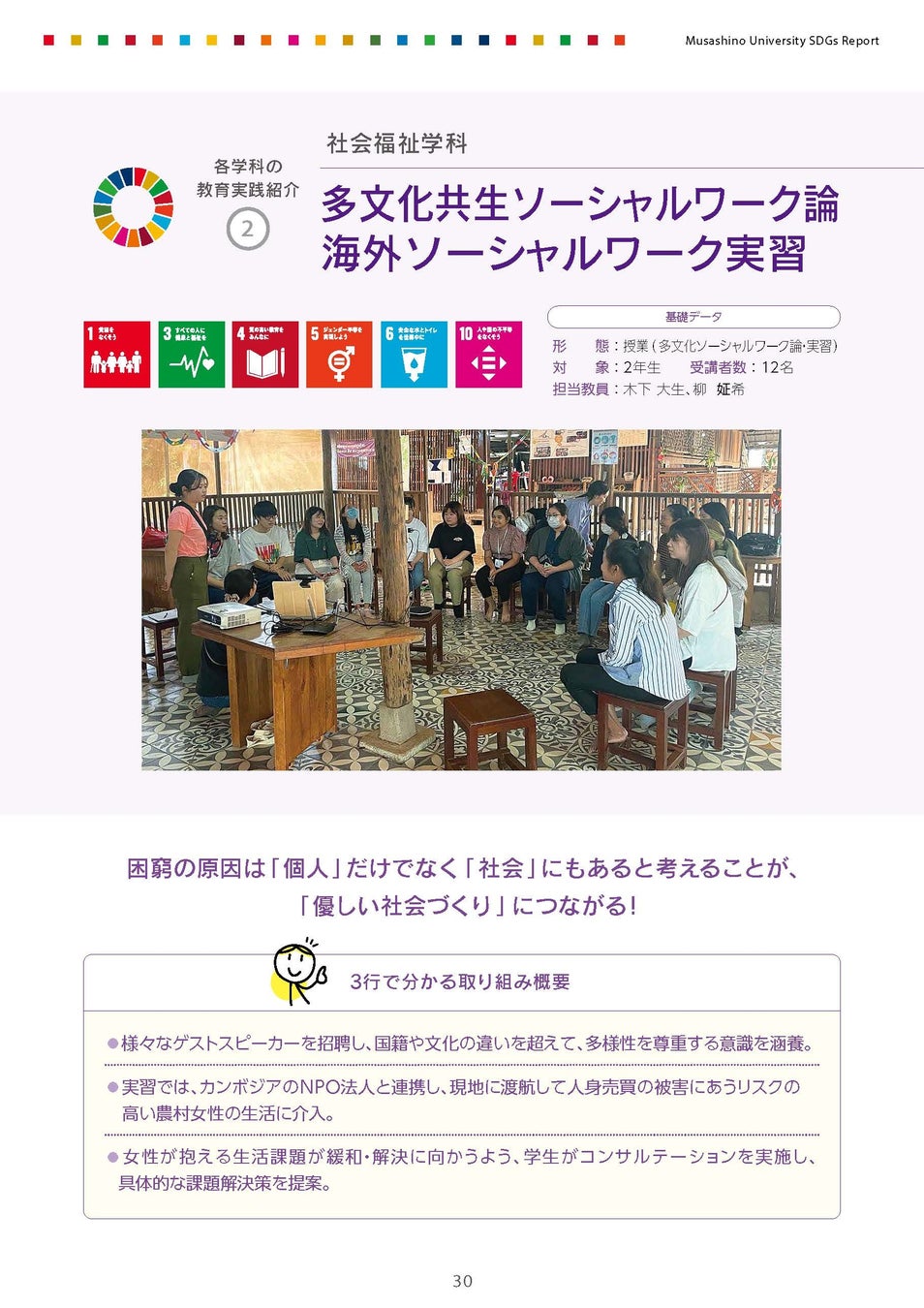 ・全学共通科目「SDGs基礎」や探究型授業の展開 ・「SDGsの基礎~みずから学ぶ世界の課題」の発刊 |