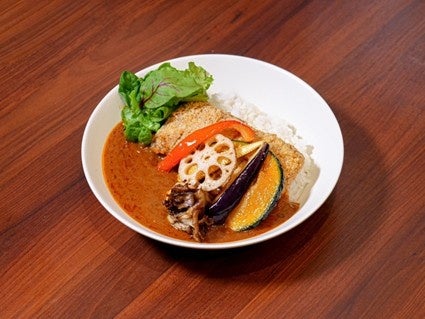 おからこんにゃくのカツに彩り野菜を添え、スパイスが香る特製カレー。身体にやさしく満足感たっぷりの一皿です。