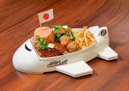 飛行機プレートで旅気分!人気のハンバーグや唐揚げを植物性素材で。お子様も楽しめるヴィーガンランチです。