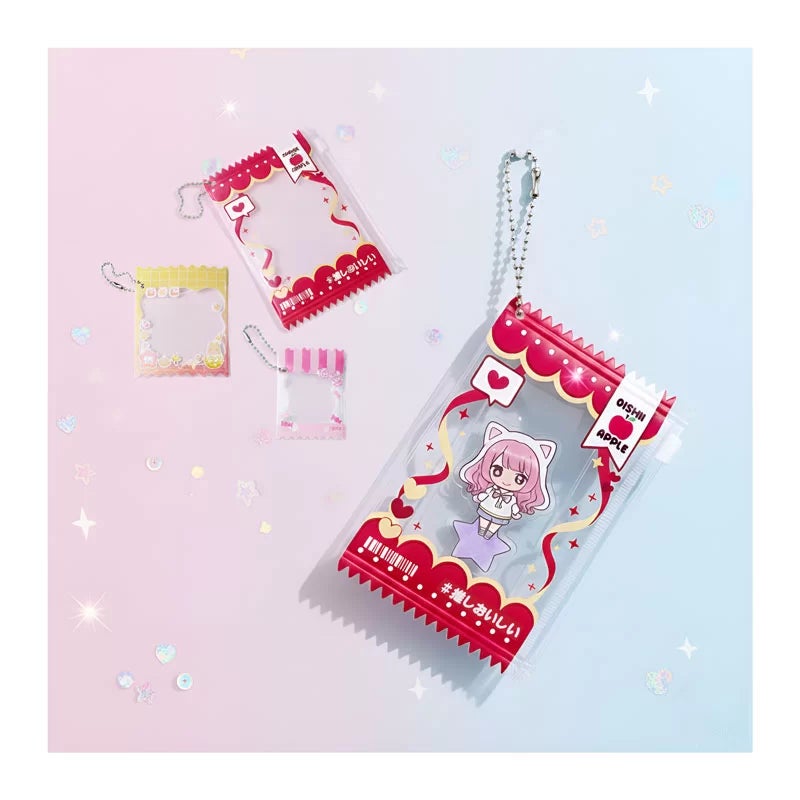 透明窓で“中身が見える”お菓子パッケージ風キーホルダーが登場。缶バッジやミニフォトを入れて、推しを可愛く持ち歩けます。3サイズ展開&フルカラー印刷対応で、個人から企業プロモーションまで幅広く活躍!