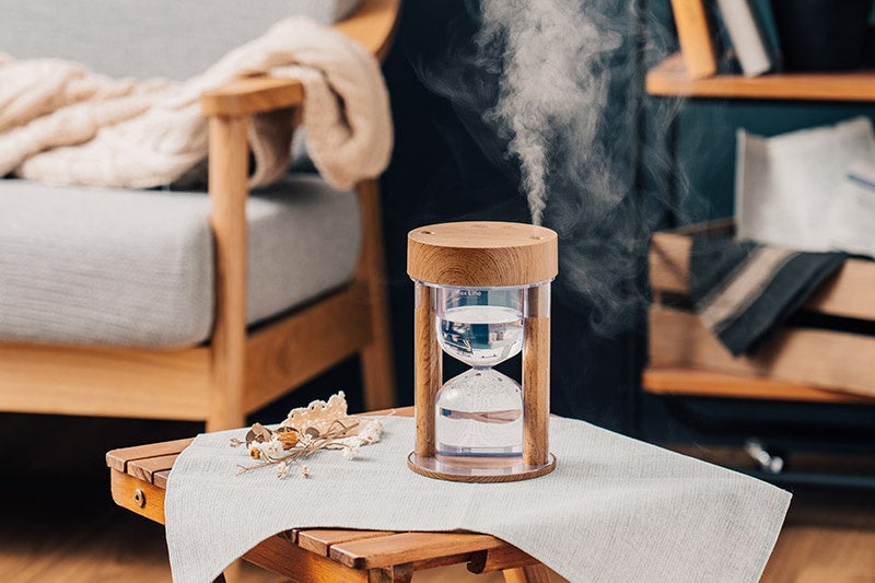 見せ置きできる砂時計型のユニークなデザインで、昨年メディアでも話題に。4種の加湿モードに加えライト機能も搭載し、機能面も充実の加湿器。