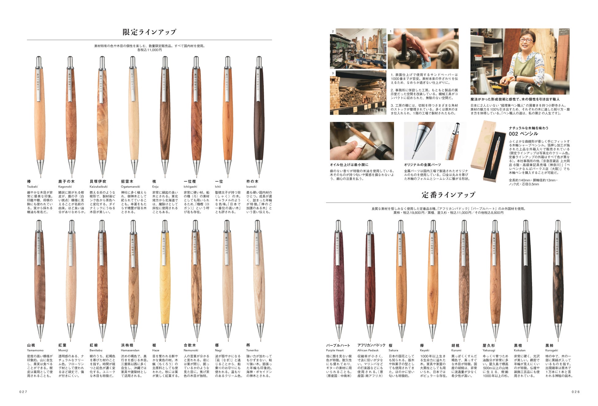 木材の魅力を多角的に伝える老舗製材所が、新たに木軸ペン製造の道へ。新事業の原動力になったのは、熱意溢れる経理担当の社員が独学で培った技術でした。製材所ならではの知見を生かした、「木」そのものの潜在能力を引き出すペン作りの真髄に迫っています。シャープペンシルのラインアップを眺めつつ、それぞれの樹種の表情をお楽しみください。