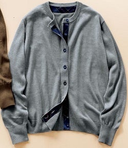 ベーシックなデザインで着回し力抜群のクルーネックニット。薄手なのですっきりと着られて、春先まで重宝します。後ろ衿ぐりのチェック柄が一気におしゃれ度アップ!見えなくてもちょっとだけ楽しい気分に♪