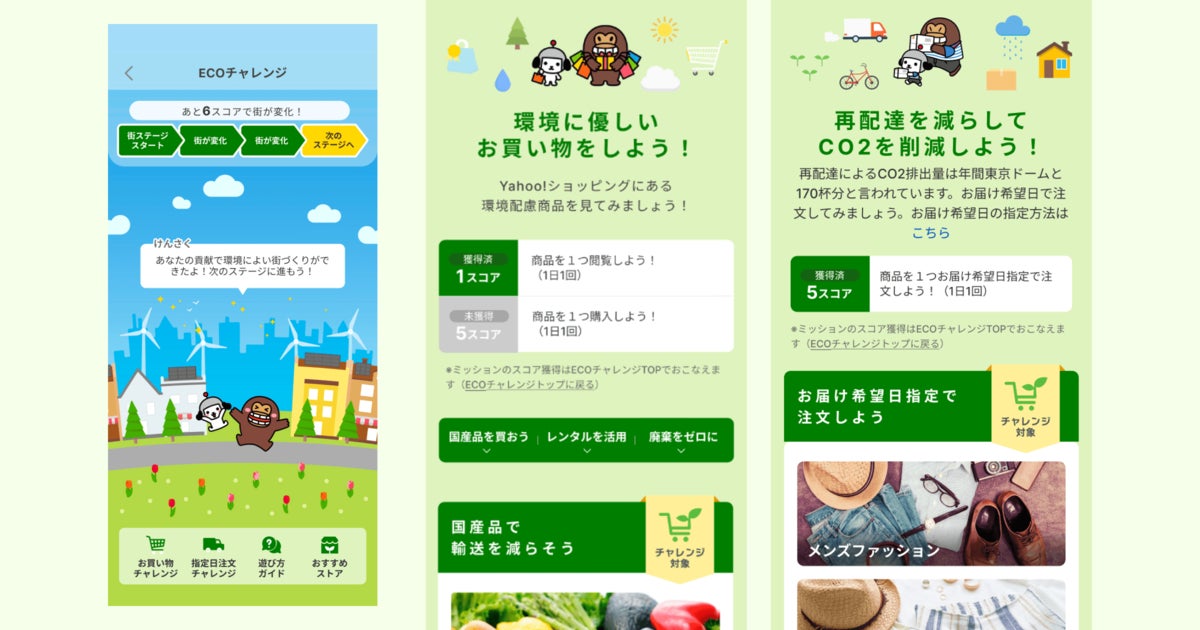 Yahoo!ショッピング、CO2削減につながるお買い物などでミッションをクリアすると、街がキレイになっていくミニゲーム「ECOチャレンジ」の提供を開始
