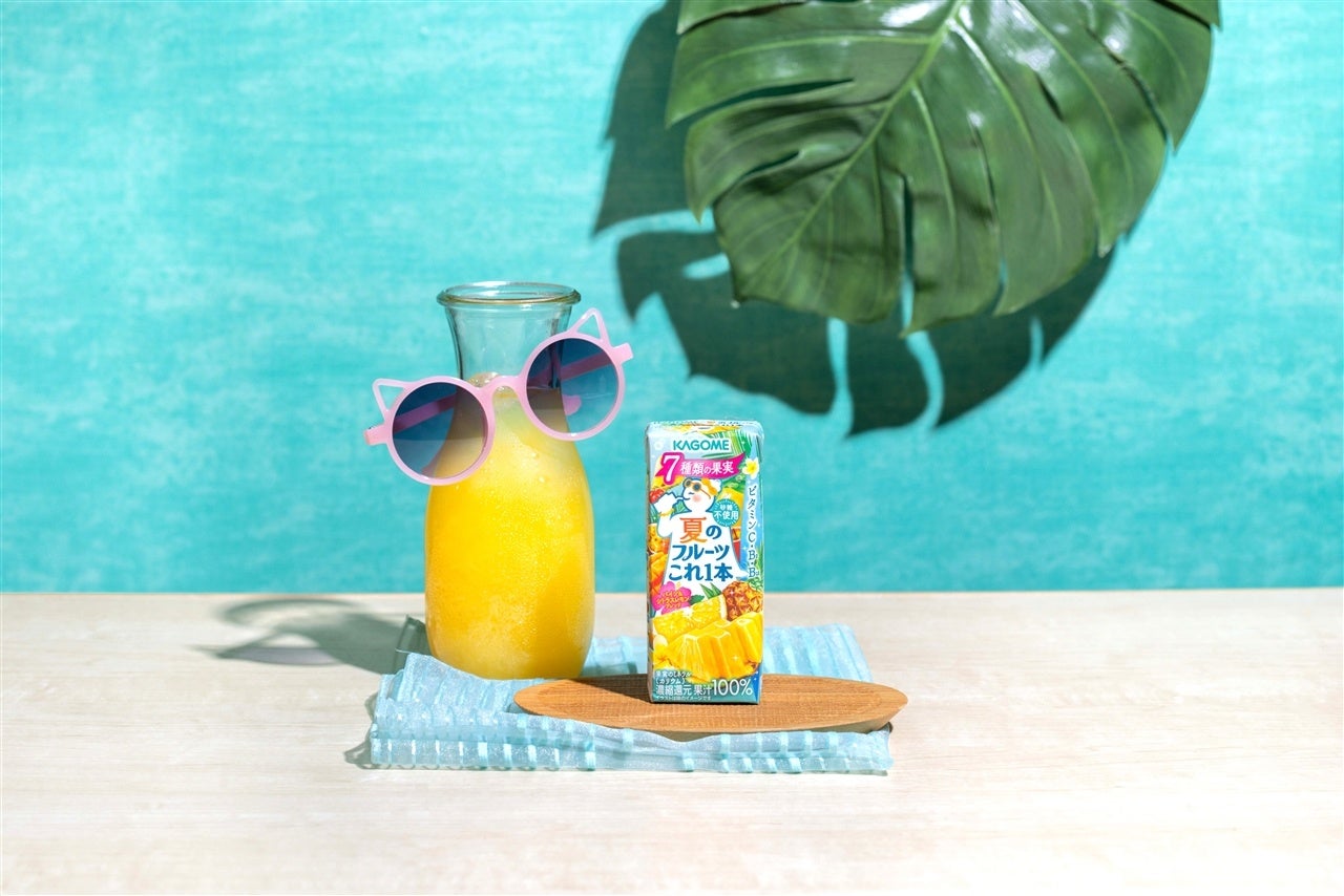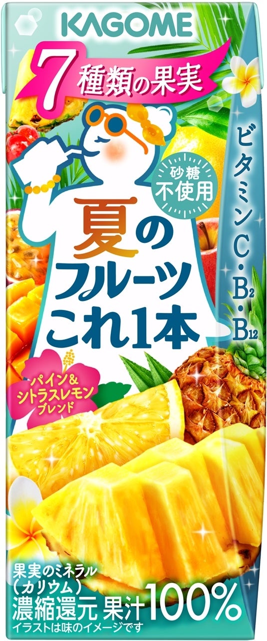 「夏のフルーツこれ一本 パイン&シトラスレモンブレンド」は、パインやシトラスレモン等の7種類の果実をブレンドした夏限定の100%果実ミックスジュースです。夏にぴったりの爽やかな味わいで、シトラスレモンのほどよい香りを楽しむことができます。また、たっぷりビタミンC・B2・B12や果実のミネラル(カリウム) を摂ることができます。