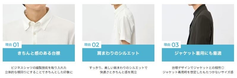ポロシャツは、ワイシャツと比べるとスポーティーでカジュアルな印象を与えますが、襟が付いているためきちんと感を演出できます。そのため、ビジネスシーンでもコーディネートしやすく、営業やプレゼンでも着用しやすいアイテムです。今期は、お客様から要望としてよくあがっている「冷たい」「さらっと」をキーワードにポロシャツを打ち出していきます。