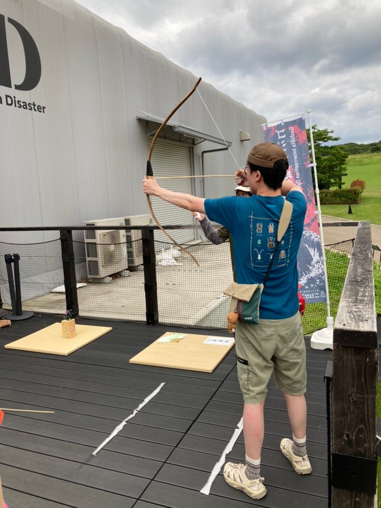 ①「弓矢チャレンジ」/ゴジラ迎撃作戦のストーリーになぞらえて、弓矢でゴジラの的当てに挑戦するゲーム
