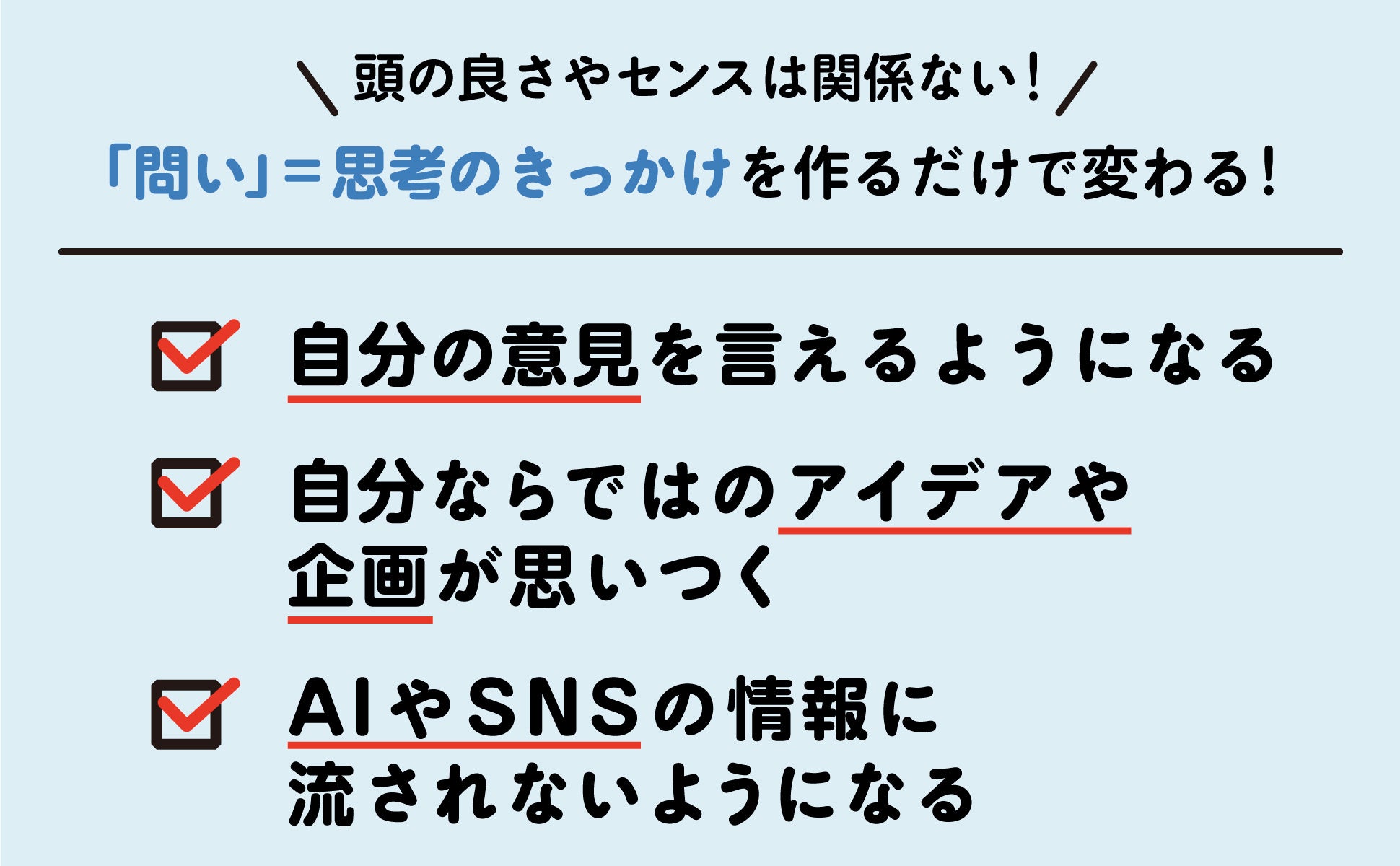 SNSやAIの情報に流されない! アイデアが出てこないときに役立つ思考スキルも多数紹介