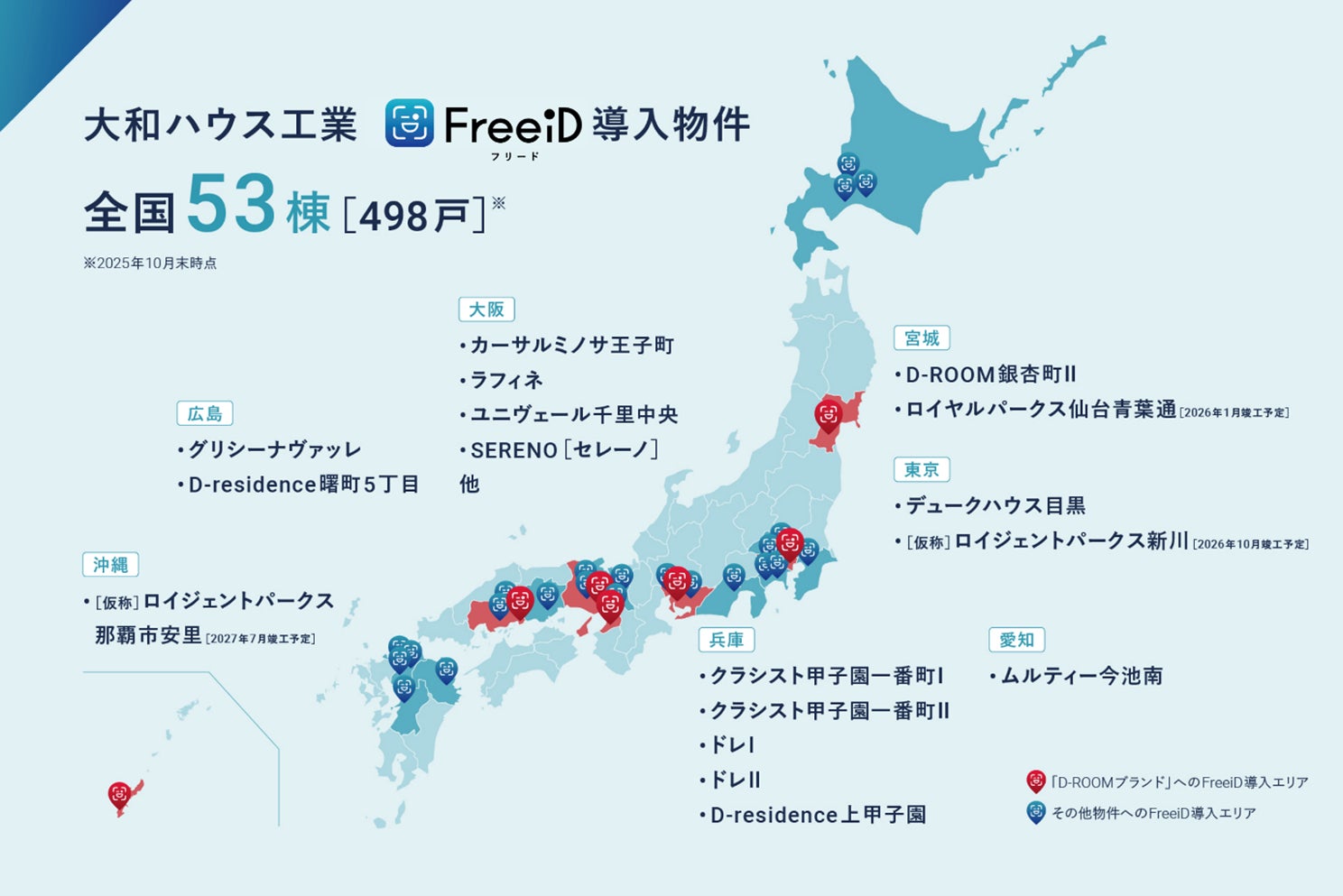 ご入居者の利便性および資産価値をより向上させるために、新たな付加価値となる設備・サービスを大和ハウス工業が検討されている中で、オール顔認証マンションの実現が可能なこと・柔軟な顔認証端末の選択が可能なこと・導入後も常に進化するサービスといった観点で、全国展開するハウスメーカーの賃貸住宅として初めて「FreeiD」を導入いただきました。