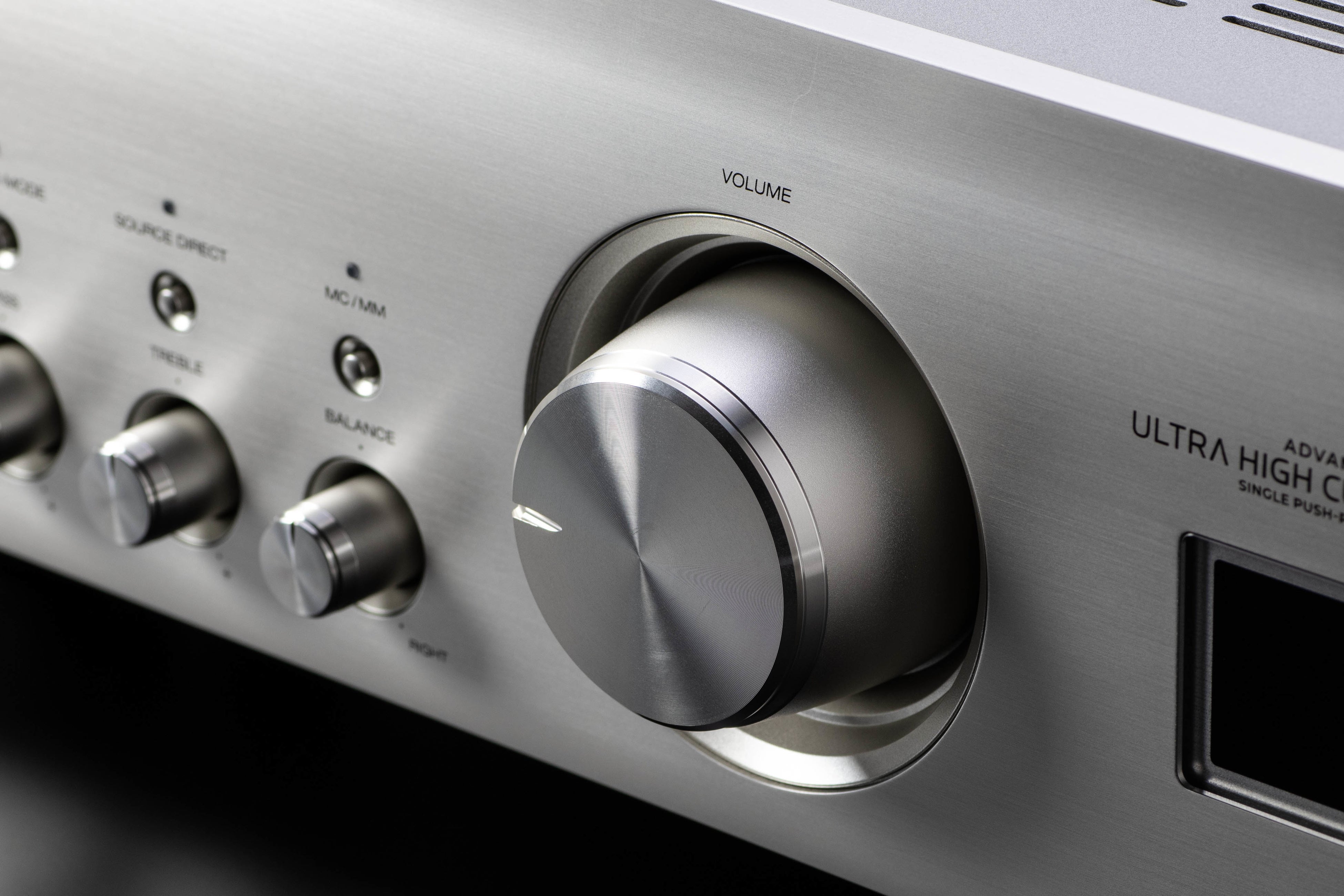PMA-1700NEは、「繊細さと力強さ」を高い次元で両立するために、パワーアンプにAdvanced UHC-MOSシングルプッシュプル増幅回路を搭載。PMA-A110の構成に準じ、従来の差動3段アンプと比較して、発振に対する安定性に優れる差動2段アンプ回路を採用し、より素直な音質傾向となりました。プリアンプも刷新され、こちらもPMA-A110と同様の可変ゲイン型プリアンプおよび電子制御ボリュームを採用し、ノイズレベルの劇的な改善を果たしています。さらに、オーディオ回路に使用される高音質コンデンサーや抵抗などのパーツのほとんどをPMA-A110と共通化し、音質担当エンジニアとサウンドマスターによる入念なサウンドチューニングを行うことによりデノンの理想とする「Vivid & Spacious」なサウンドを実現しています。