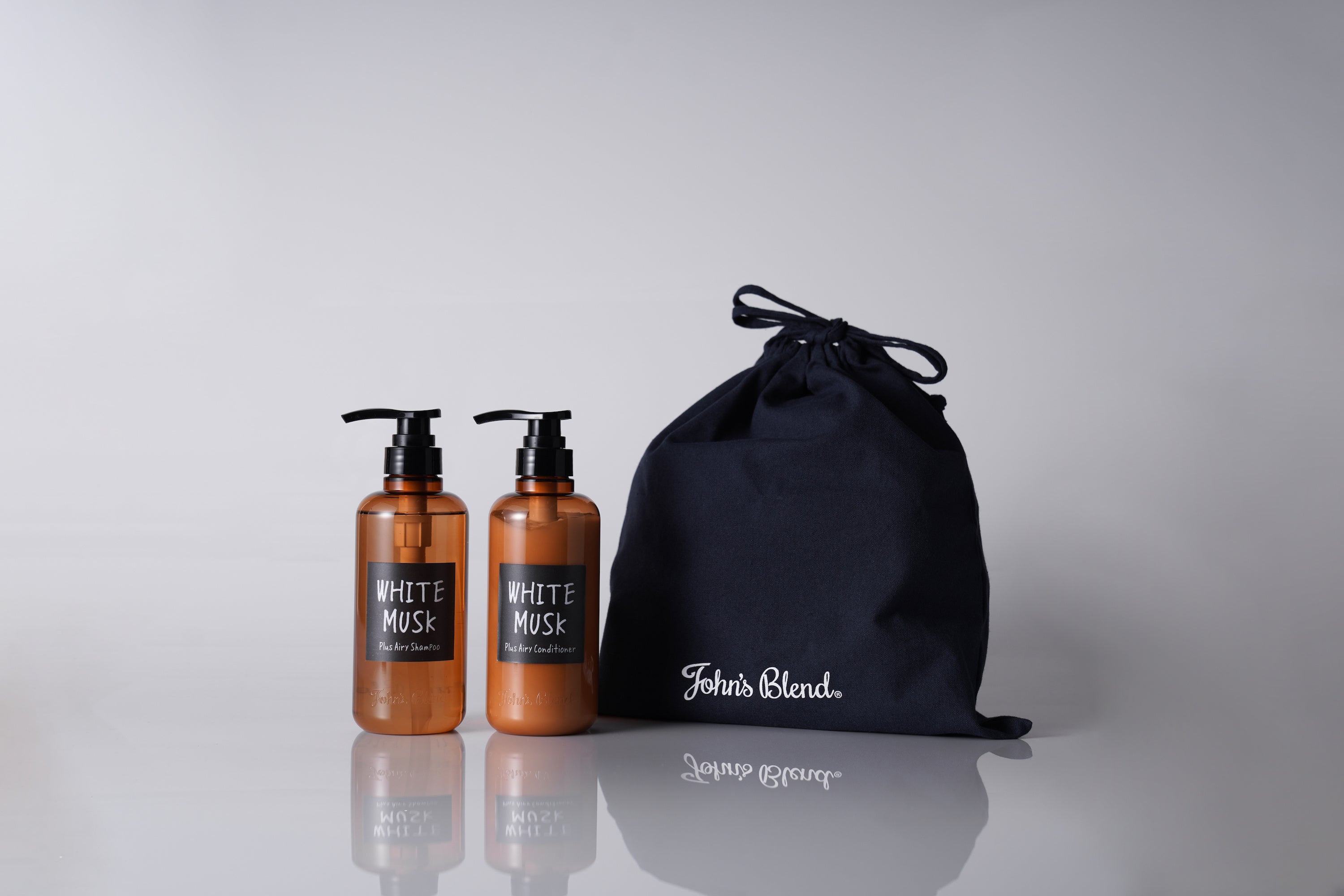 フレグランスブランド「 John's Blend 」から、ホワイトムスクの豊かな香りに包まれる、ふわりとうるおう「プラスエアリーシャンプー&コンディショナー」が新発売。