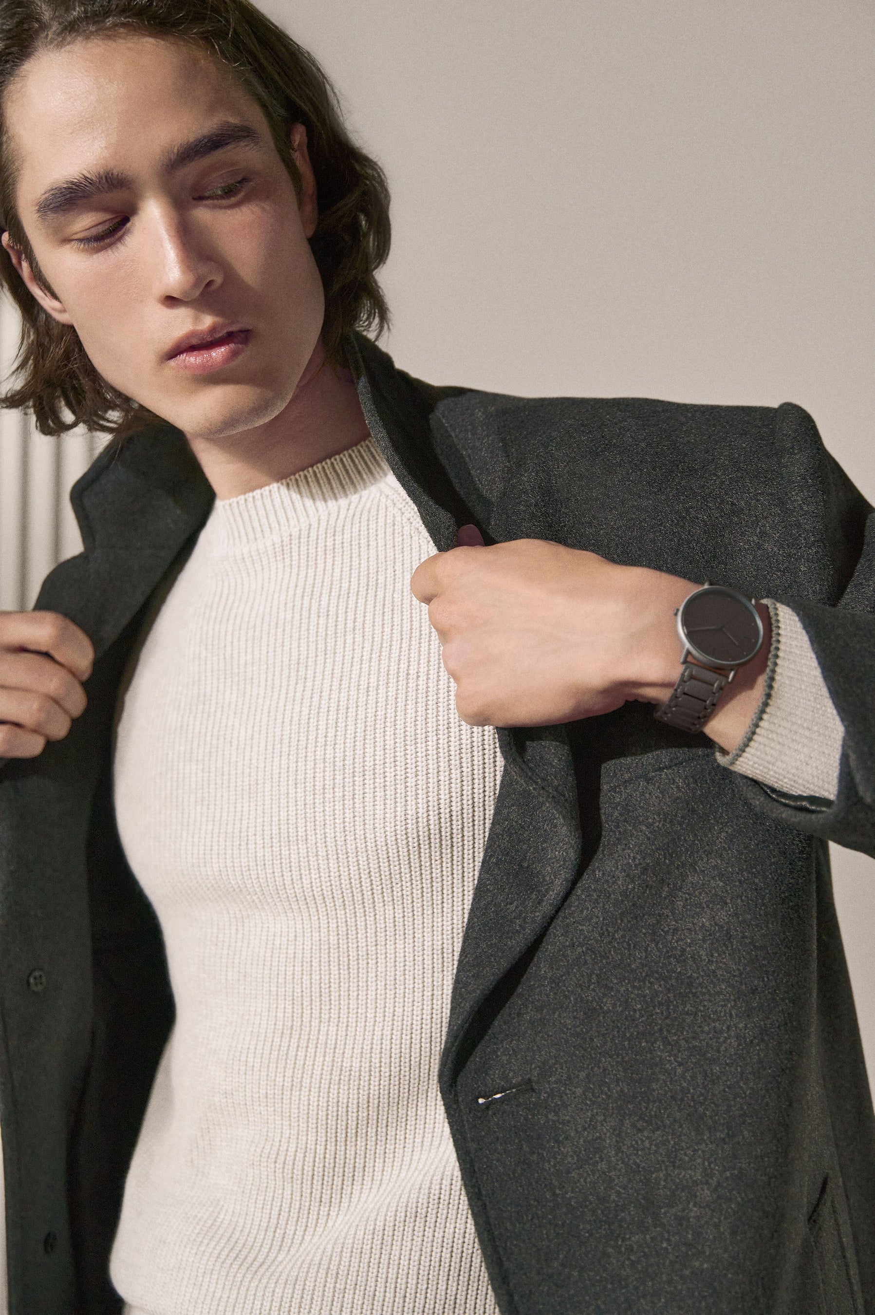 ドットとバーを組み合わせたインデックスはミニマルでありながらも視認性を確保した機能的なデザインの「SIGNATUR」。新作はサンドブラスト仕上げのダイアルに、腕にフィットするしなやかなデザインのブレスレットを組み合わせました。日常使いはもちろん、ビジネスシーンの腕元にも取り入れやすいデザインとなっています。