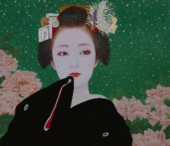 【日本画、洋画】黒川雅子 先笄 「黒髪」を舞う