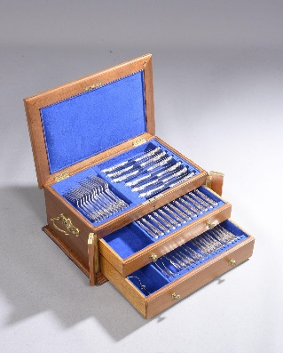 【装飾美術】キングズパターン・スターリングシルバー・カトラリーセット マホガニーケース