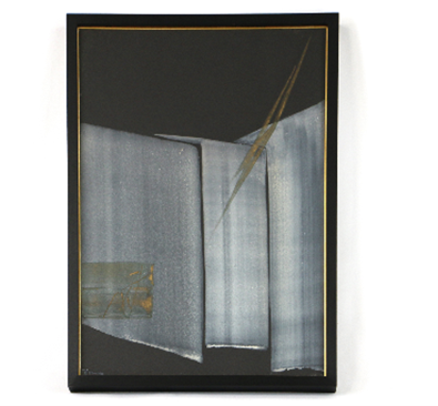 和紙に、墨・金箔・銀箔・金泥・銀泥・朱泥といった日本画の画材を用い、独特の筆使いと、動きのある斜めの線を描いた。