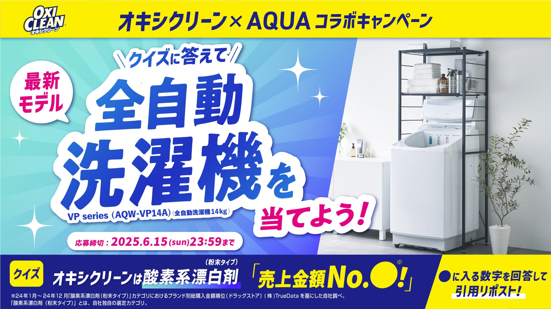 全自動洗濯機が当たる!オキシクリーンがもらえる!家電メーカー「AQUA」と「オキシクリーン」がコラボキャンペーンを開催