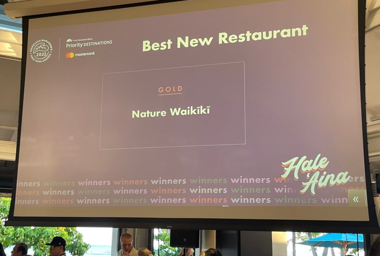 ハワイの食文化に関する賞の中で最も由緒ある賞の一つ、Hale'Aina Awards(以下、ハレ・アイナ賞)が発表され、「natuRe waikiki」が、2022年の "Best new restaurant" カテゴリーで「金賞 (Gold)」"Best Cocktail Program"カテゴリーで銀賞を受賞しました。