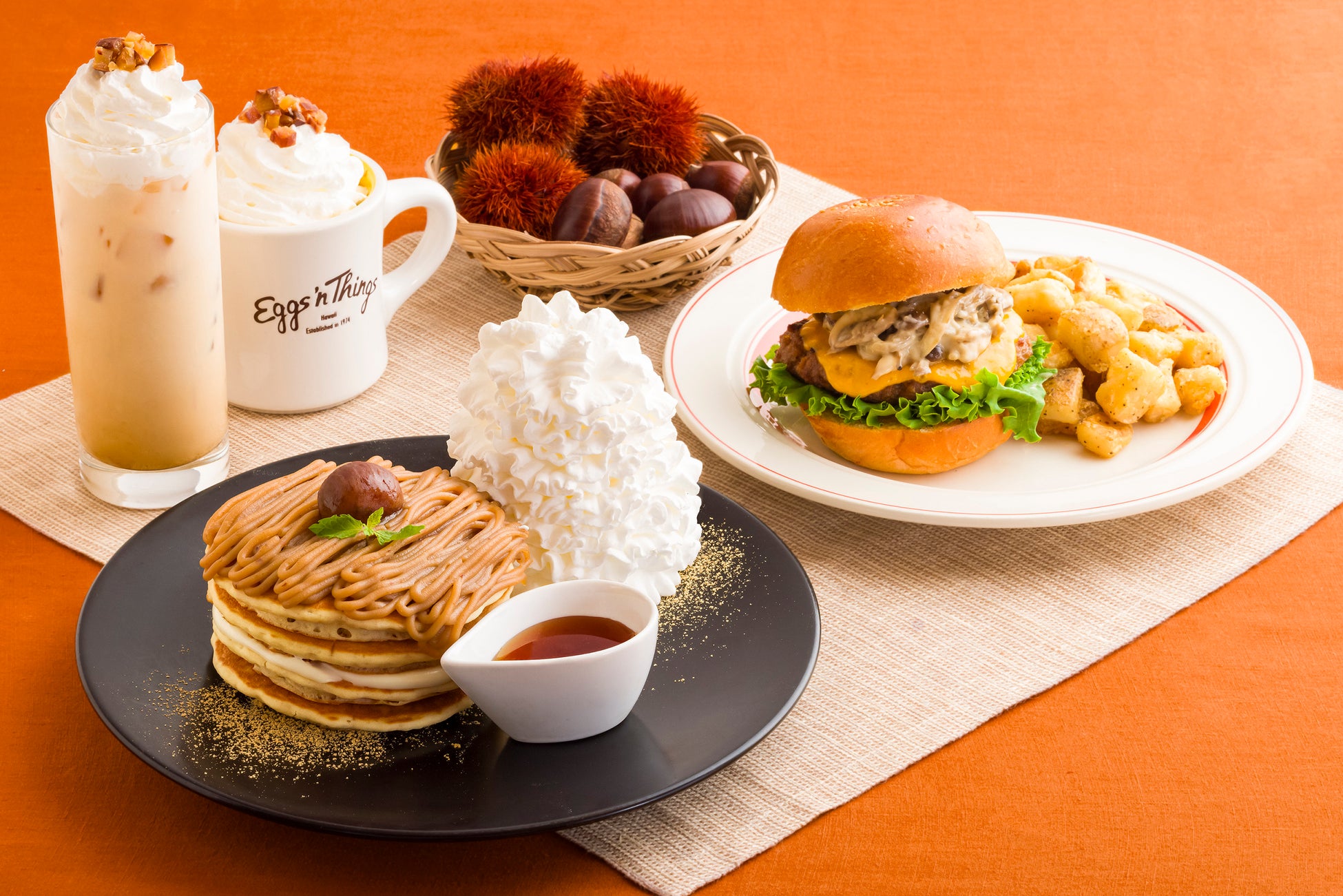 10月24日(木)の期間中、『和モンブランパンケーキ』と『クリーミーマッシュルームバーガー』を国内のEggs ’n ThingsおよびEggs ’n Things Coffee全店舗で販売いたします。