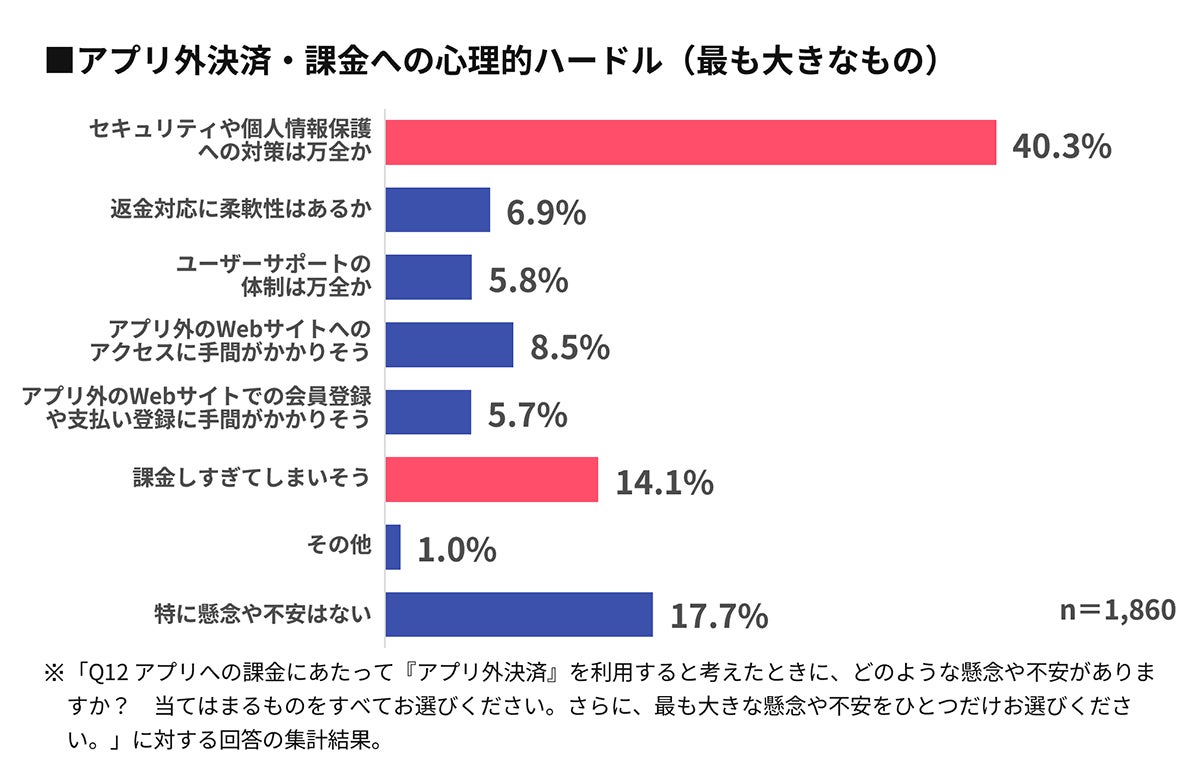 アプリ外決済・課金への最も大きな心理的ハードルは「セキュリティ・個人情報保護対策(40.3%)」