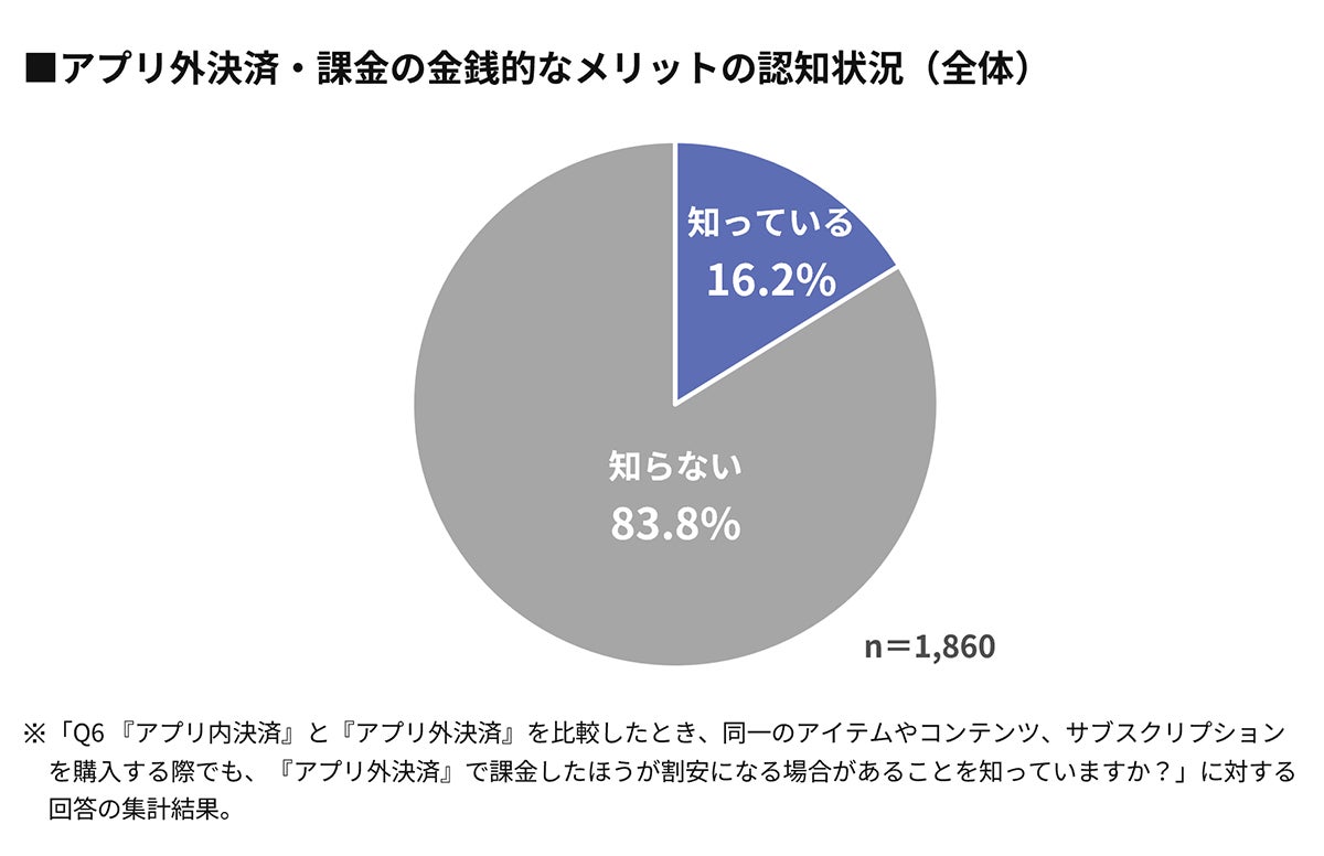 アプリ外決済・課金の金銭的メリットを83.8%が知らない