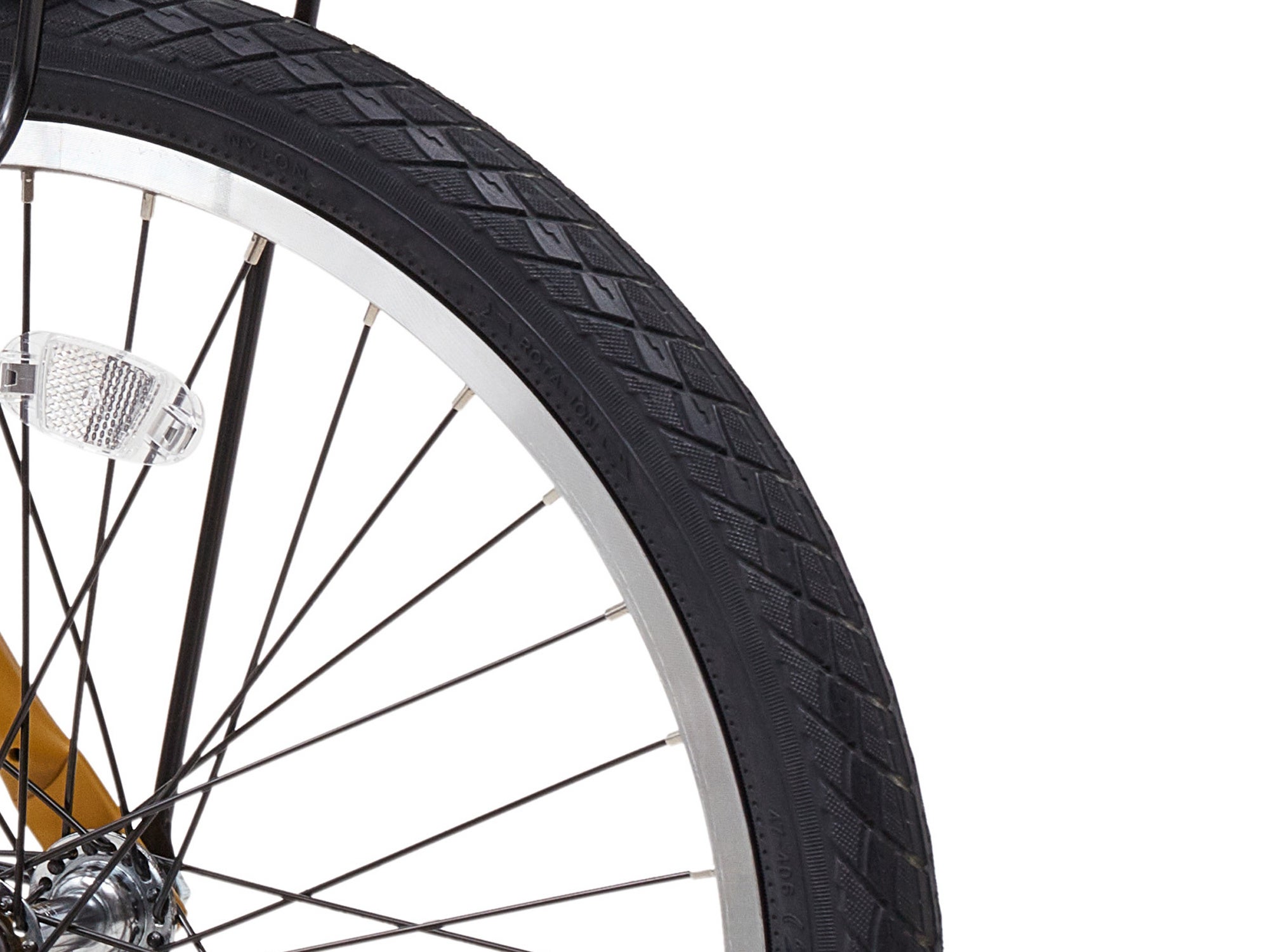 路面の衝撃を和らげる、安定性と耐久力に優れた幅広タイヤ