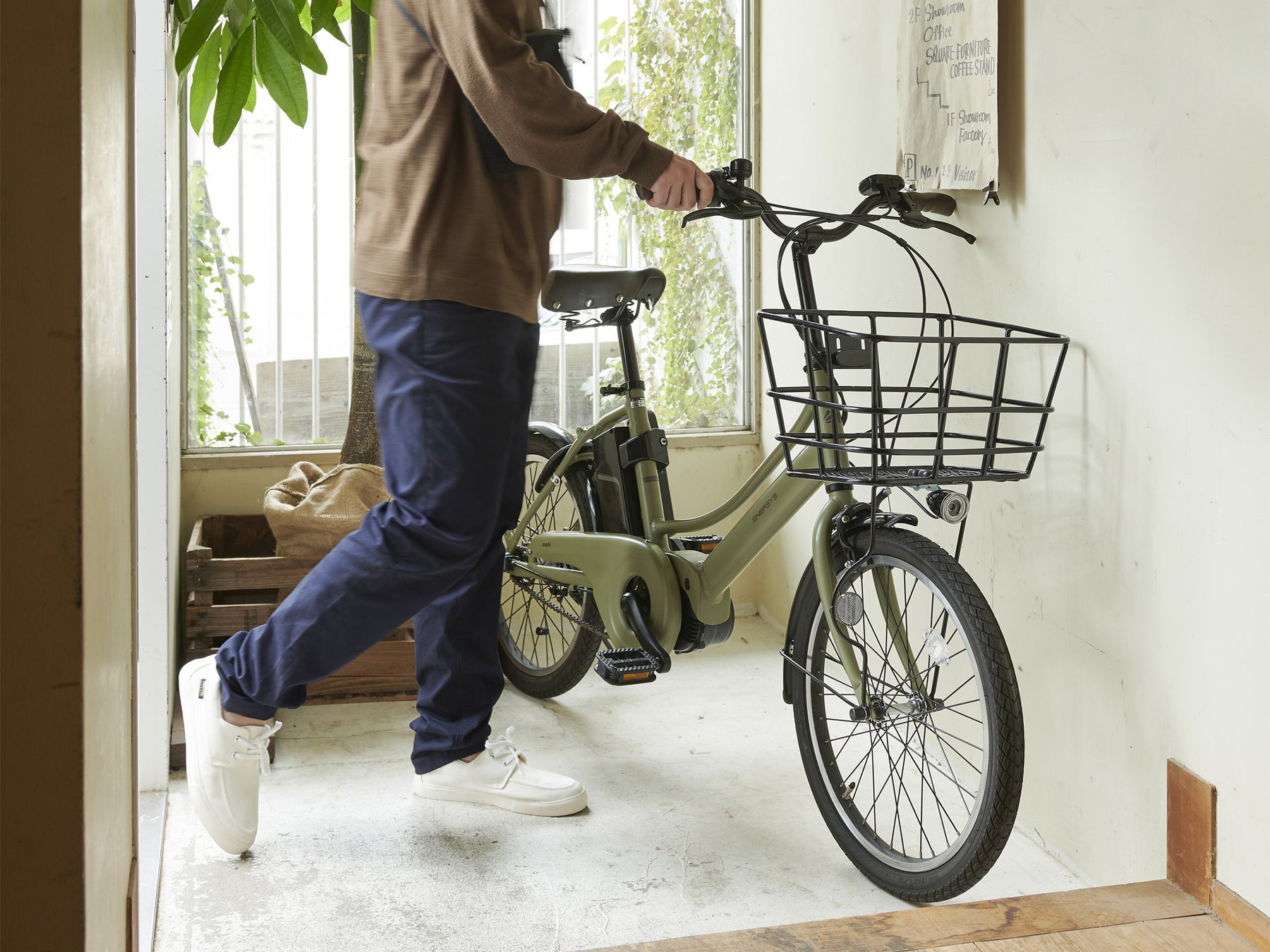 コンパクトなので、エレベーターに乗せたり、玄関前や屋内で保管する場合も場所を取りません。押し歩きや駐輪場での取り回しの良さも魅力です。