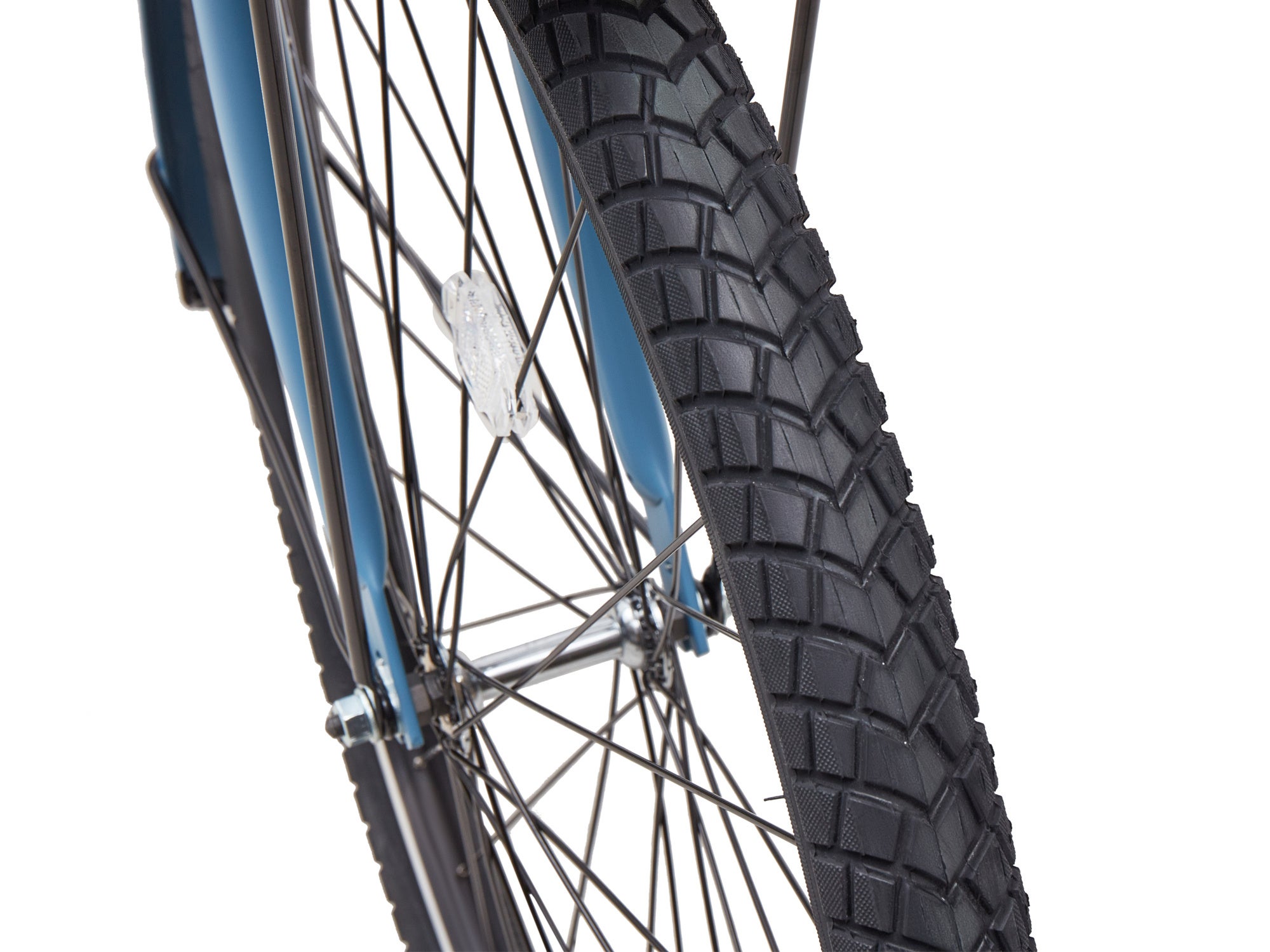 路面からの衝撃を和らげ、走行時の安定性も高い幅広タイヤ