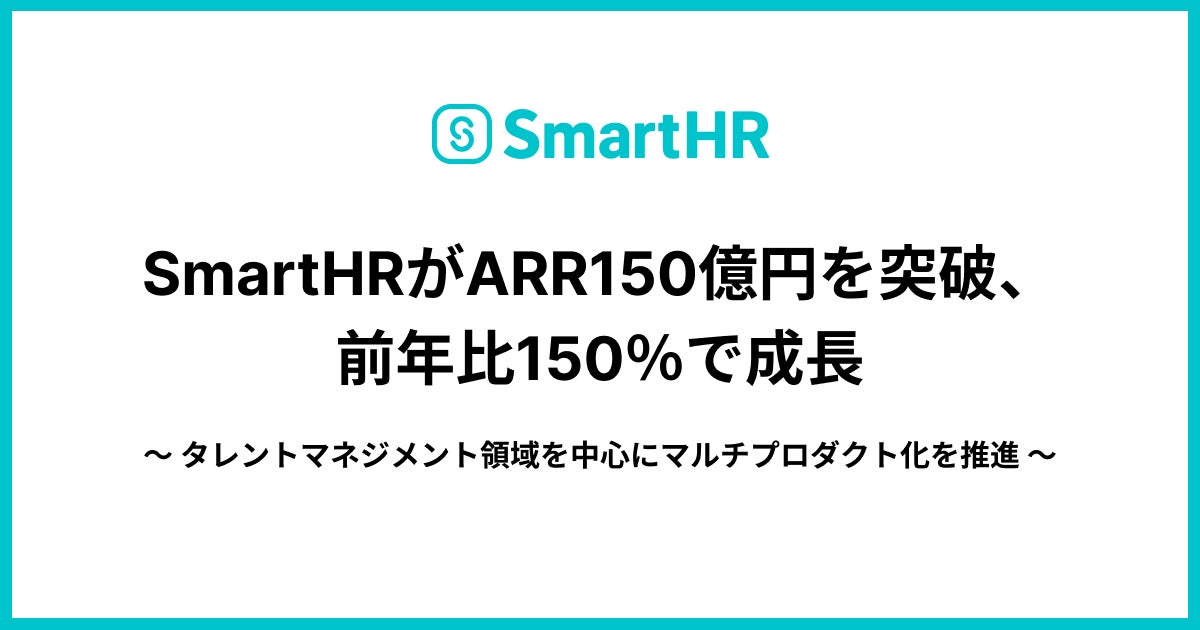 株式会社SmartHR(本社:東京都港区、代表取締役CEO:芹澤 雅人、以下「当社」)は、2024年2月にARR(※1)150億円を突破しました。当社は、昨年同月にARR100億円に到達しており、前年比150%の成長となりました。
