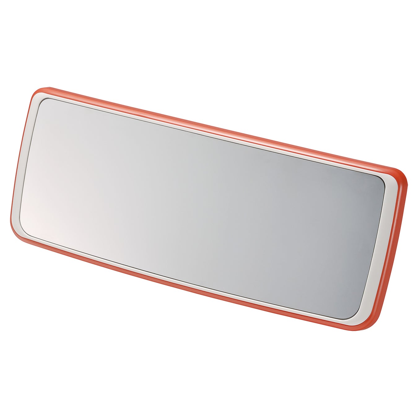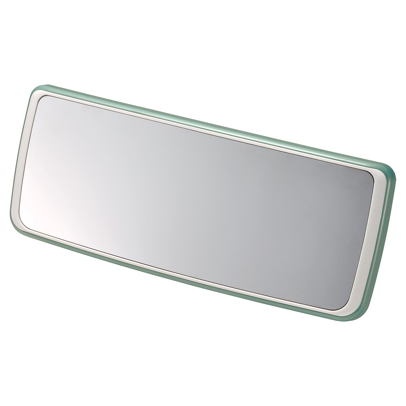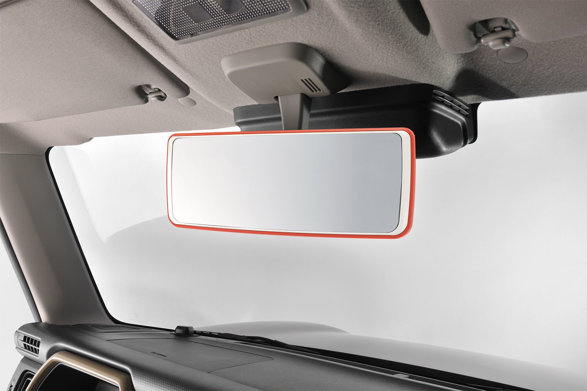 後部座席の様子もしっかりカバーする、ポップな2トーンカラーのワイドミラー