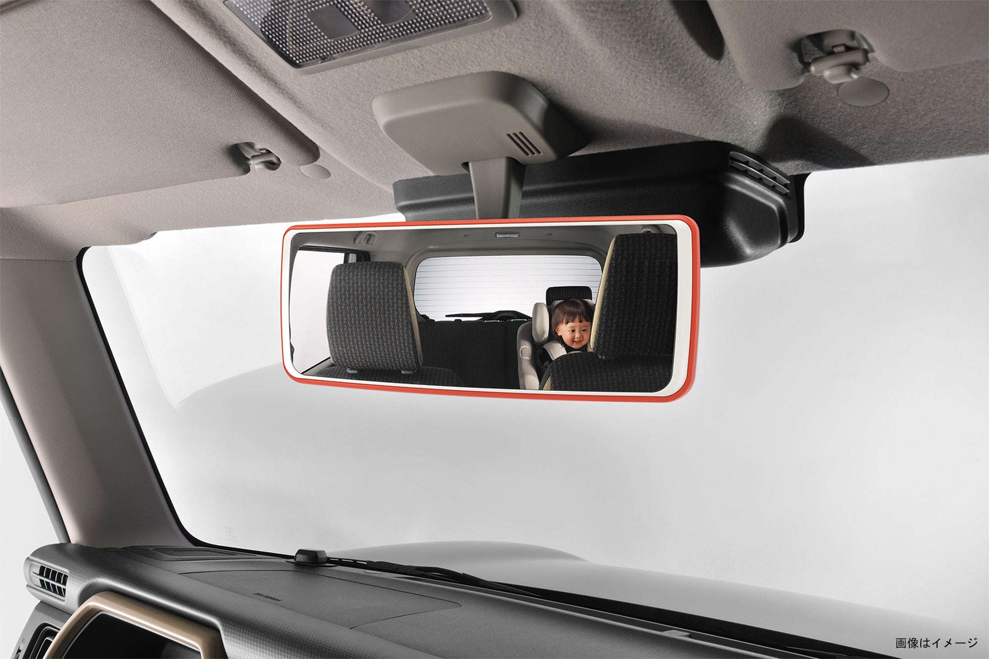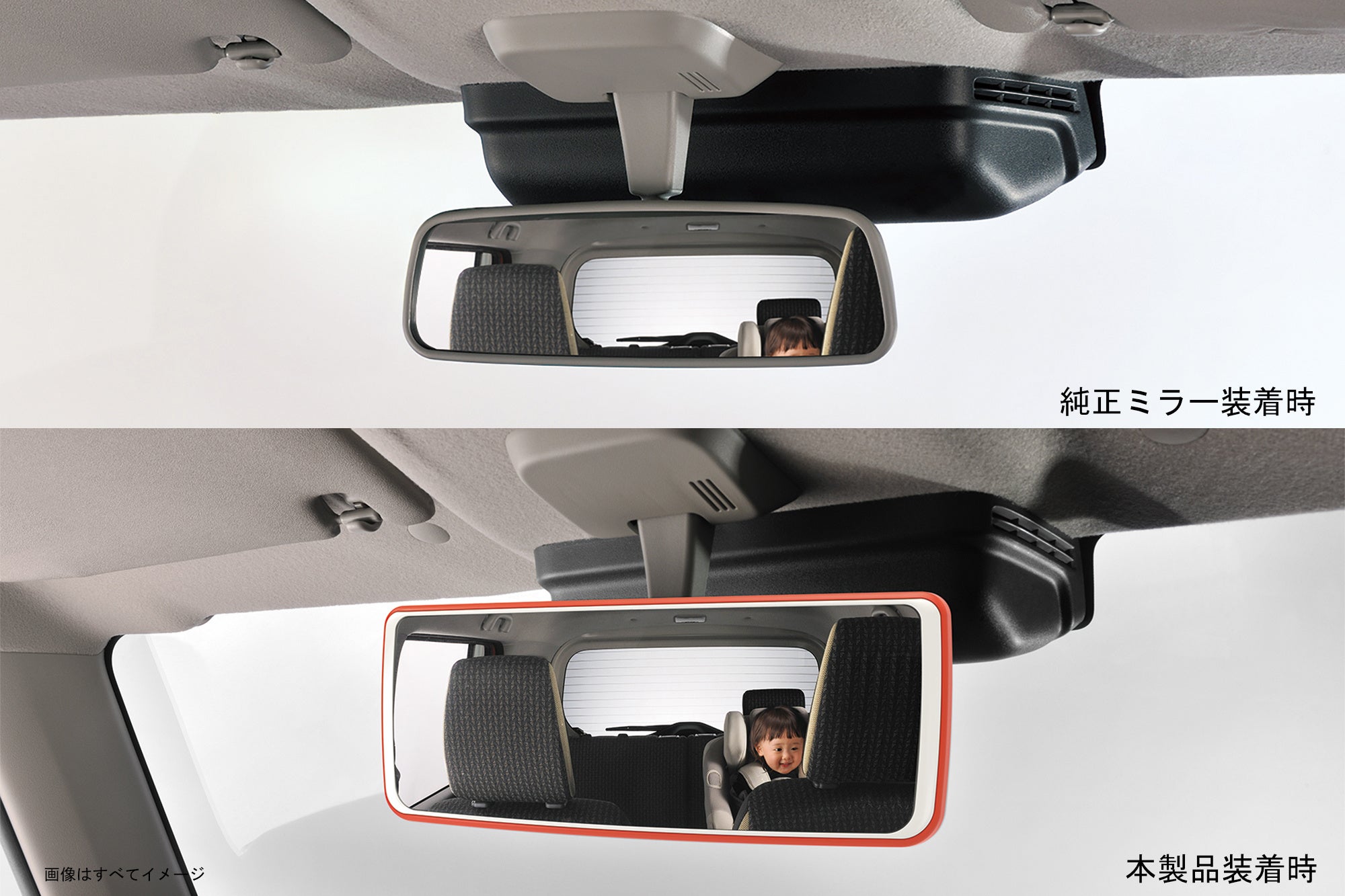 視界が広いため、後部座席に座るお子様の表情や動きをミラー越しに確認しやすく運転中も安心。また、後席のお子様からも運転者の顔が見え、コミュニケーションが良好に -