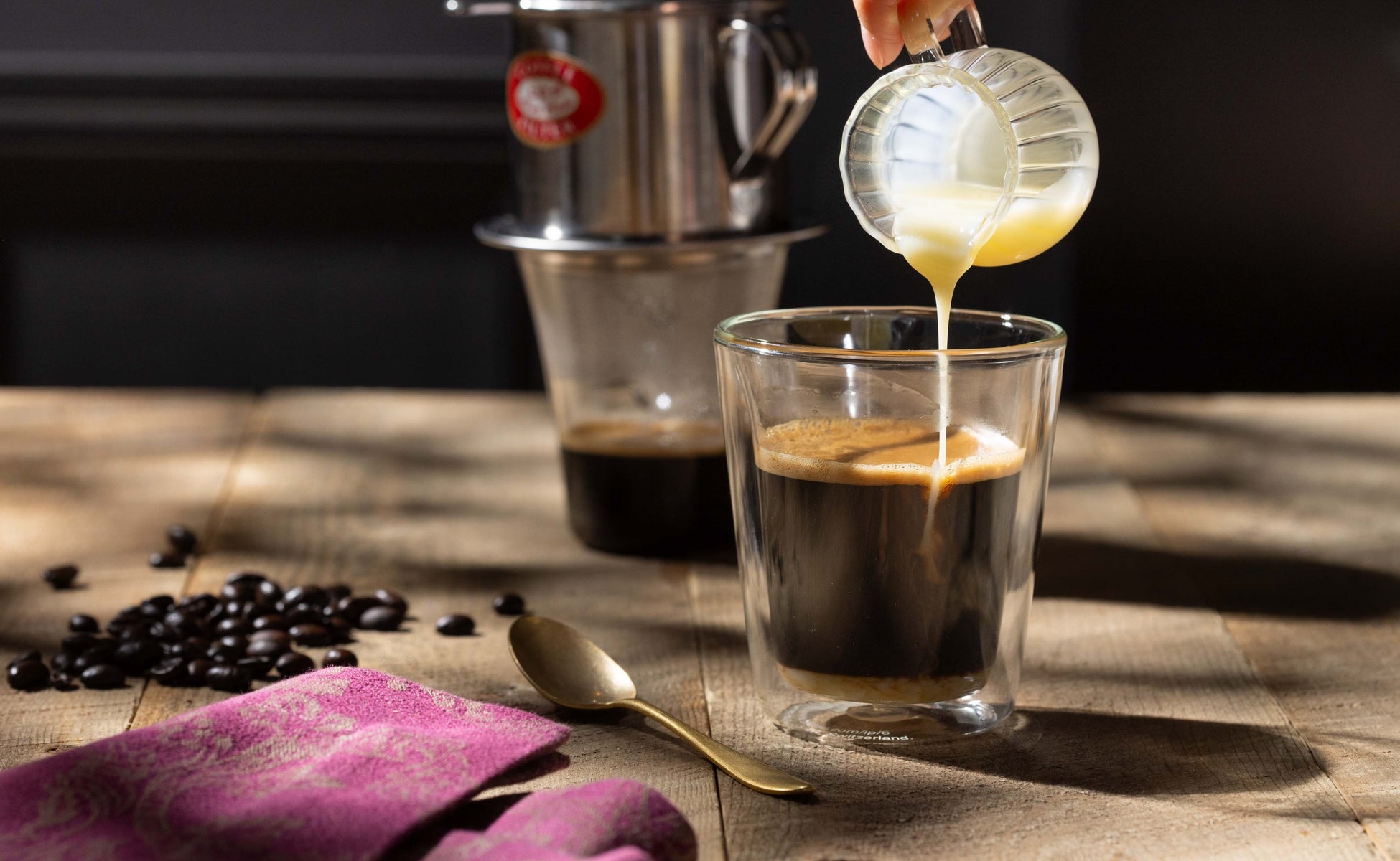濃厚な味わいを堪能できる自慢の一杯。練乳を入れて甘さとコクをプラス。