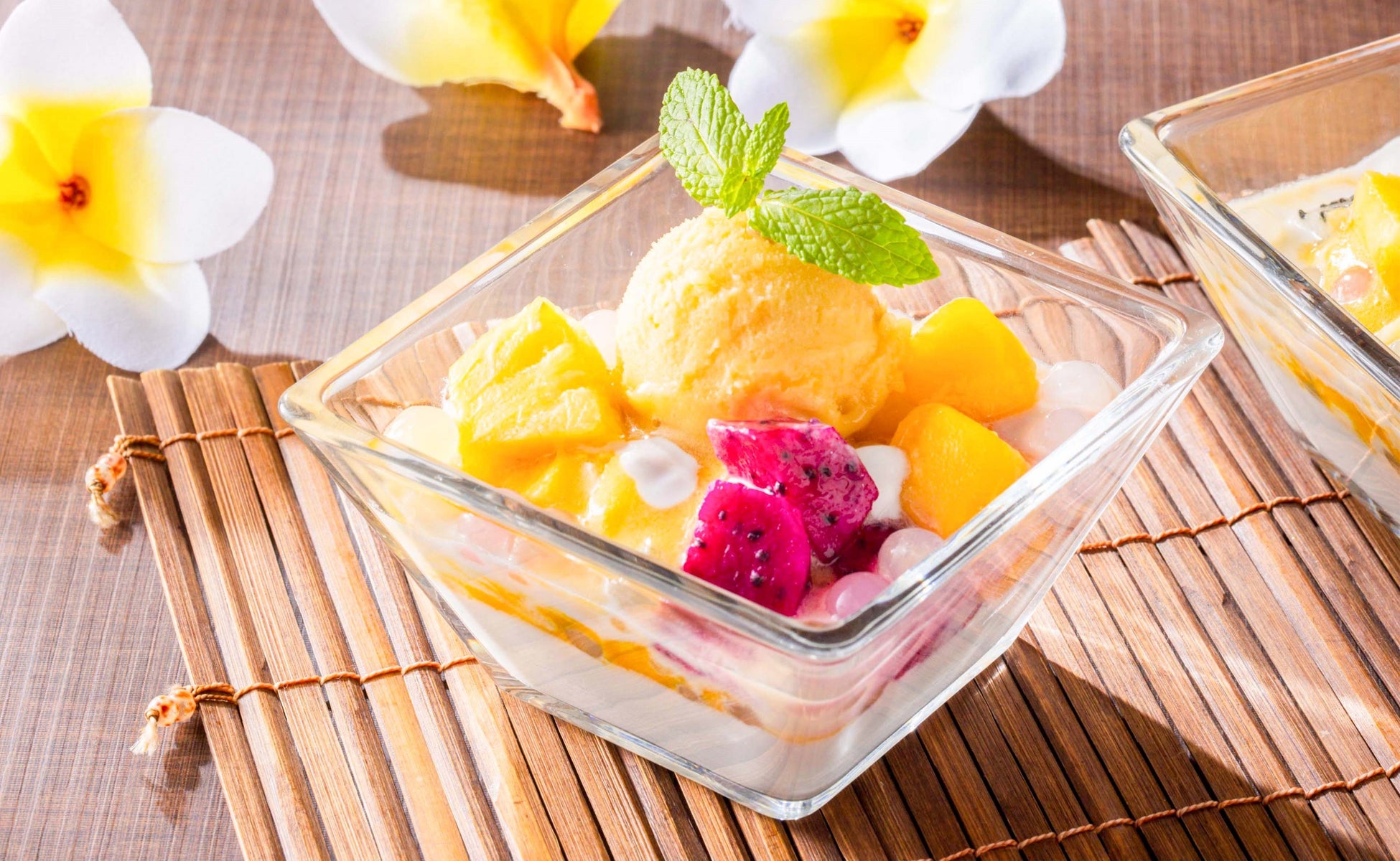 ベトナムスイーツ「チェー」を特製ブラマンジェとアジアンフルーツで仕上げました。ココナッツミルクとトロピカルフルーツの相性は抜群。さわやかで美味しいベトナムスイーツをお召し上がりください。