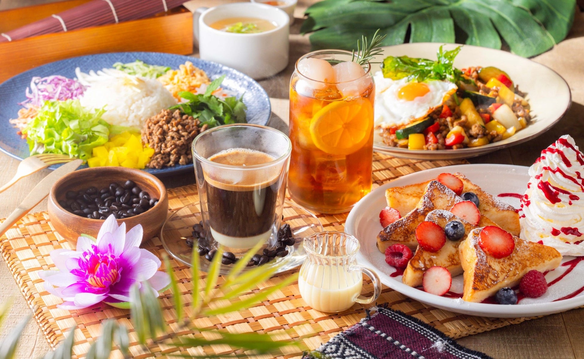 タイやベトナム等の “アジアンローカルフード” と “コーヒー” を軸にスタンダードで美味しいカフェ料理を展開。本格的なアジアン料理から、親しみやすいスタンダード料理まで幅広い品揃えで、どんなシーンでも楽しめます。また、ホイップをたっぷりのせたフレンチトーストも多数ご用意いたしました。