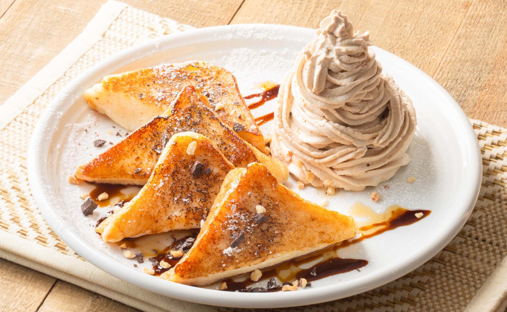 ミルクと卵白をしっかり染み込ませてバターで焼き上げ、軽やかでしっとりとした仕上がりに。コーヒークリームのほろ苦くさっぱりとした味わいがフレンチトーストの優しい甘さを一層引き立てます。