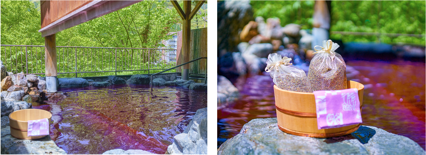 爽やかなラベンダーをポプリにして入れた香り高い湯を、露天風呂でもお楽しみいただけます。