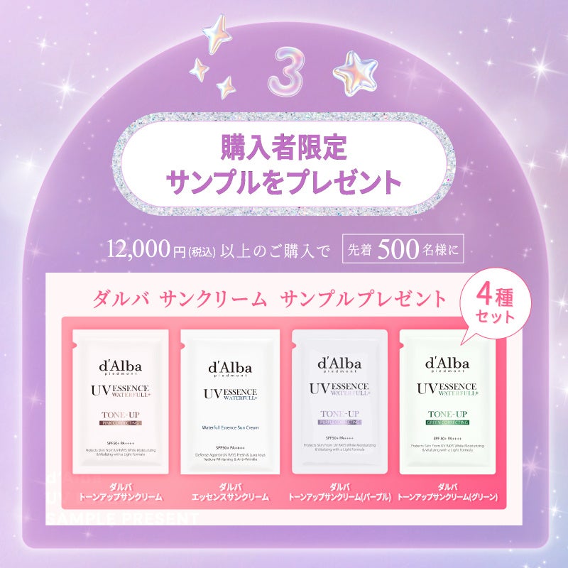 キャンペーンスタートと同時に、『LIPSショッピング』で12,000円(税込)以上のご購入で先着500名様に「ダルバ」の『サンクリーム4種セット』の サンプルをプレゼント。
