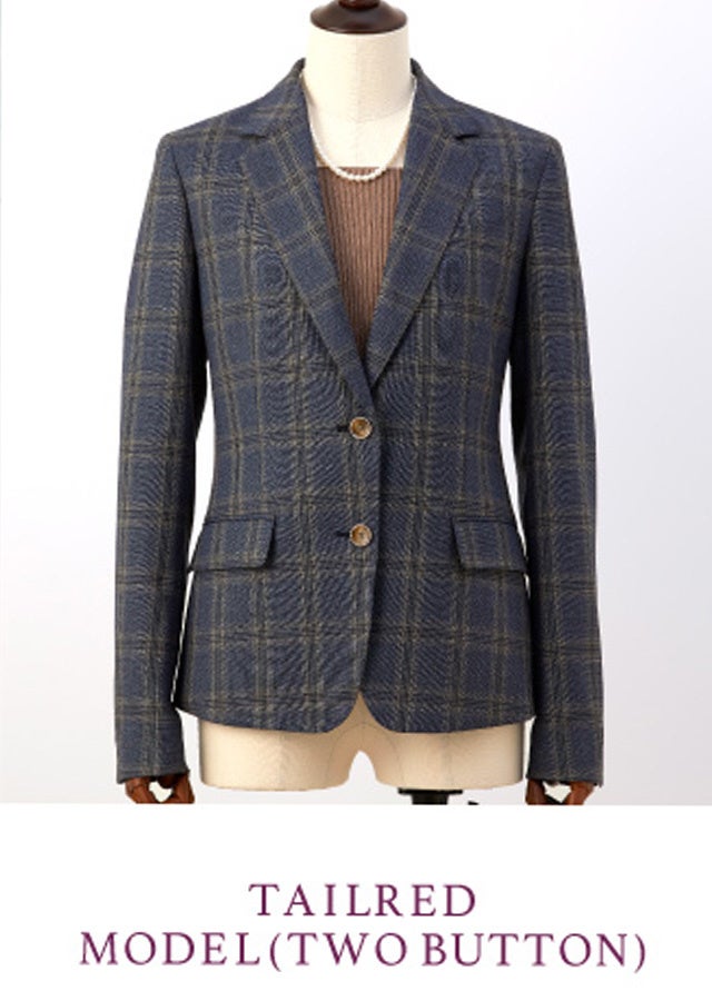 トラディショナルな2つボタンのテーラードジャケット。気品を感じさせつつ、ウエストの曲線が女性らしさを引き立てるモデル。