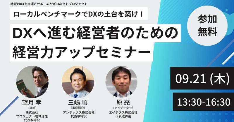 宮城のDX推進へ9/21開催「DXへ進む経営者のための経営力アップセミナー 〜ローカルベンチマークでDXの土台を築け!」