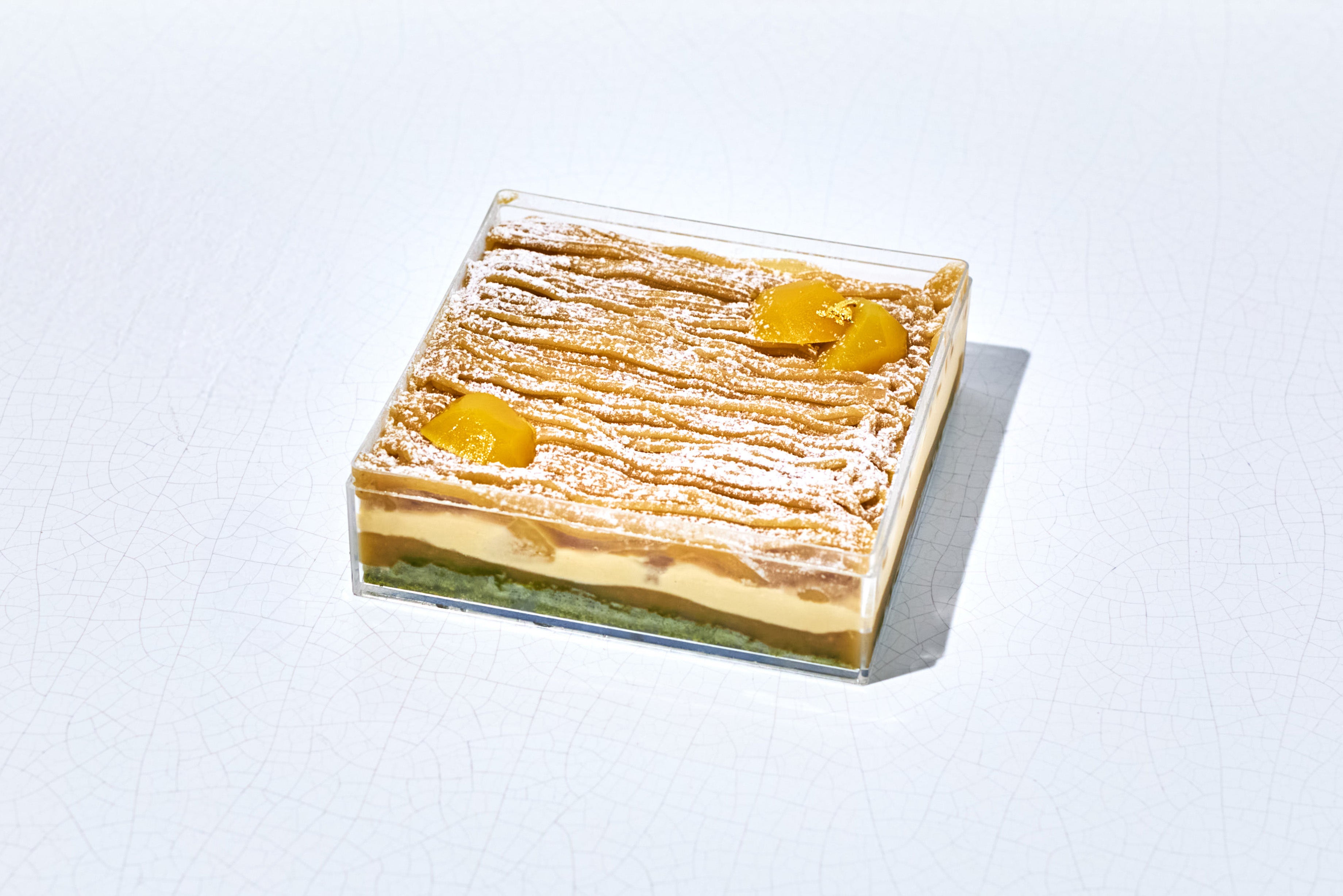抹茶生地に紅はるかの奥深さ、和栗の優しい風味を重ね、濃厚で口溶け豊かな逸品です。