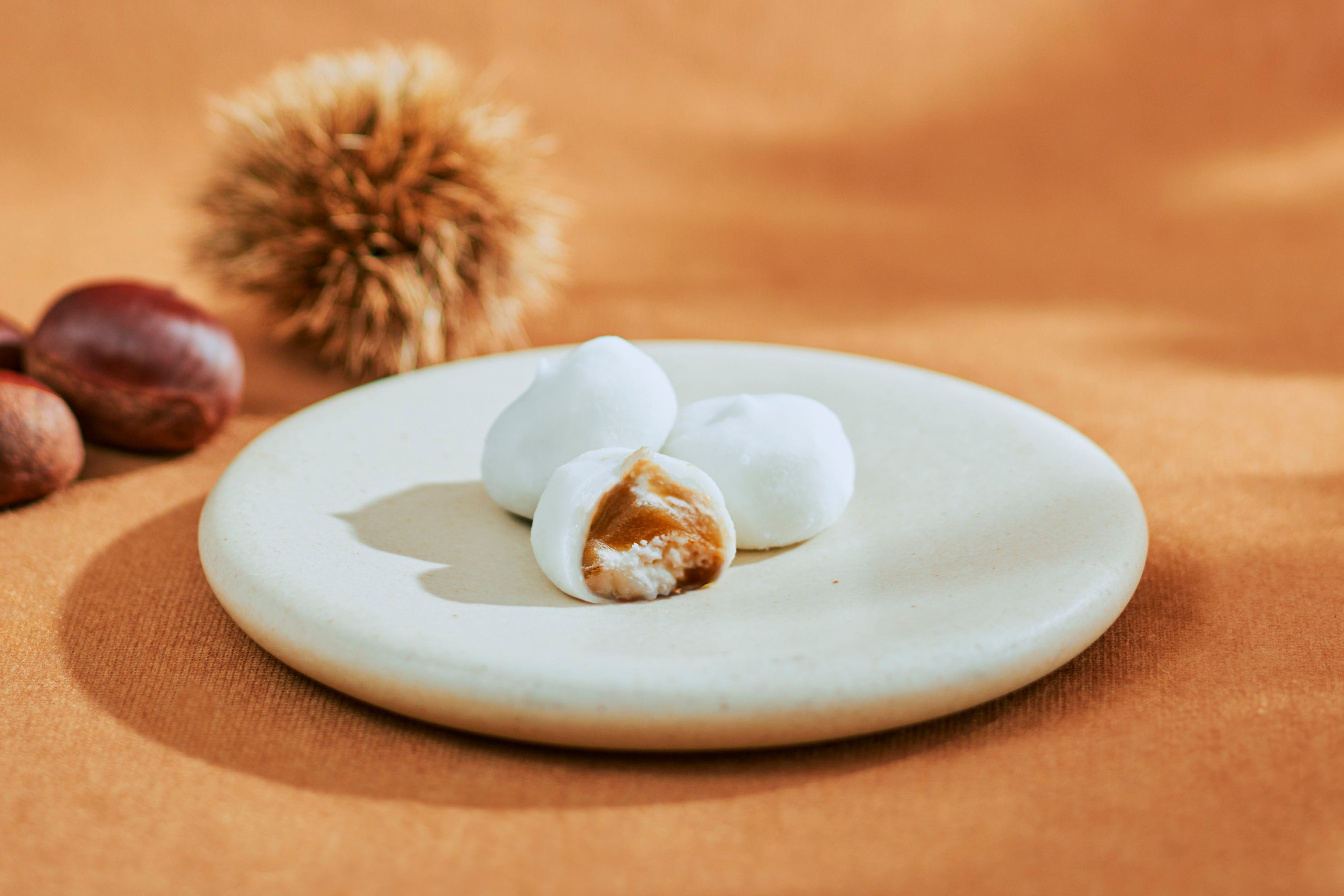 しっとりとした口溶けの柔らかな求肥の中に、小布施の深い味わいの和栗餡を合わせた秋の限定の一品。口の中でほどける、上品な味わいの大福です。