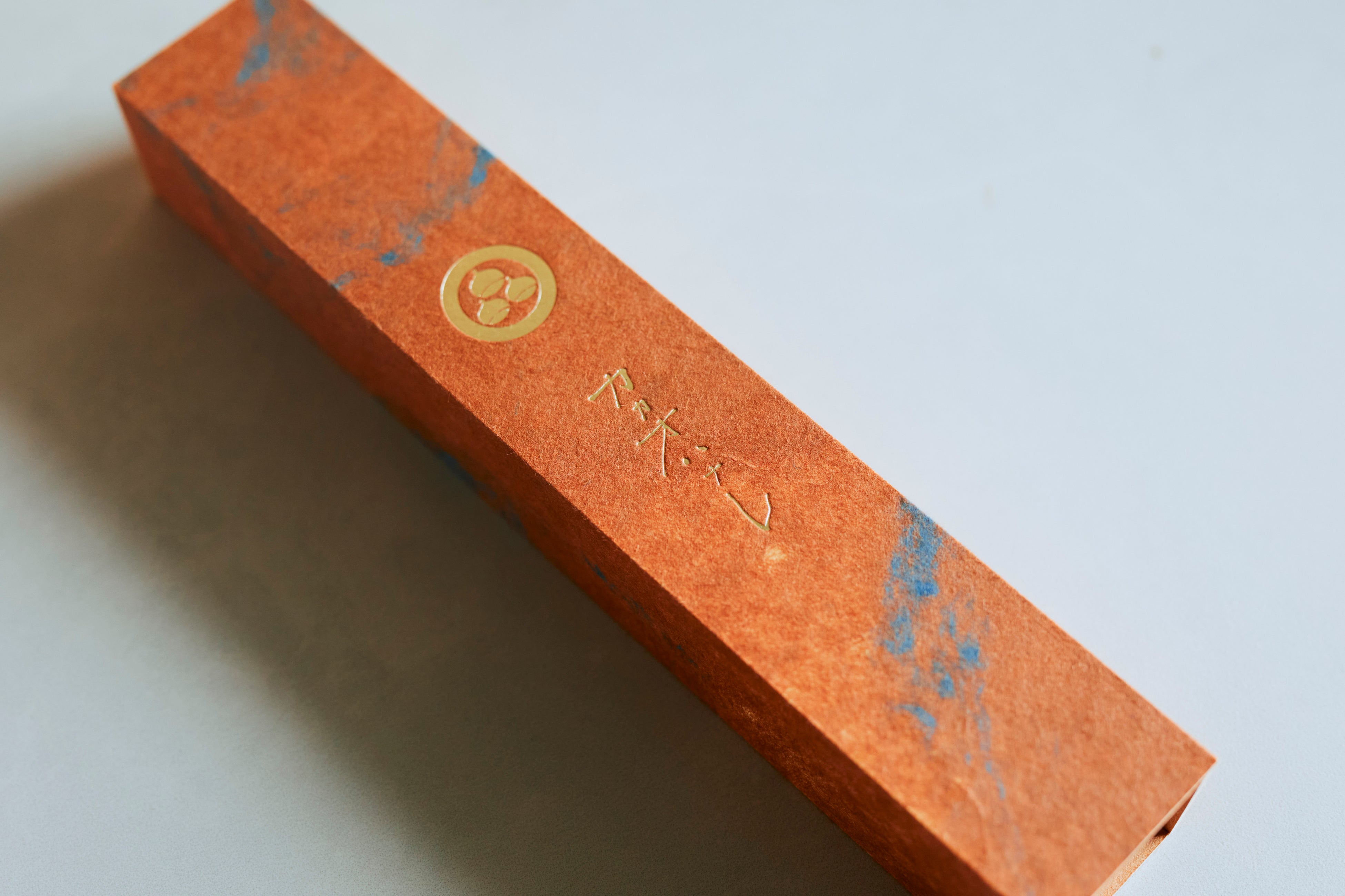 パッケージは福井県の越前市で約150年に渡り、越前和紙の製紙を行う滝製紙所の和紙を贅沢に使用しました。伝統的な技術を守りながら、現代のデザインと融合した和紙の新しい可能性を見出す滝製紙所による、小布施堂とカカオハナレをイメージしたオリジナルのデザインです。手漉きで作り上げるため、1点1点デザインが異なります。