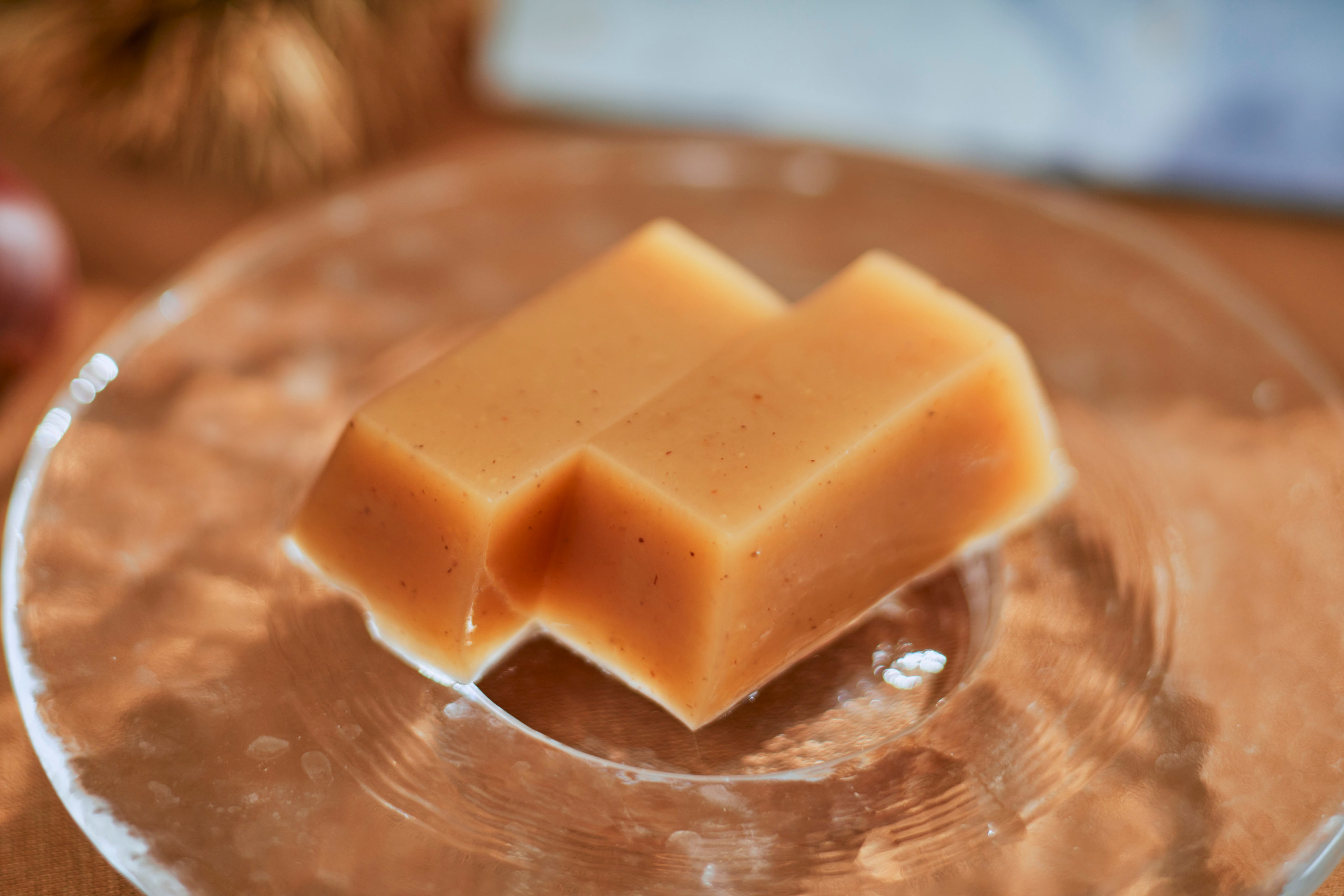 素材と手仕事にこだわり作り上げる水羊羹は、瑞々しくつるんとなめらかな舌触りです。カカオの素材の美味しさを抽出したカカオティと合わせる秋の限定品は、小布施の濃密な栗餡と合わせた、奥深い味わい。